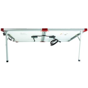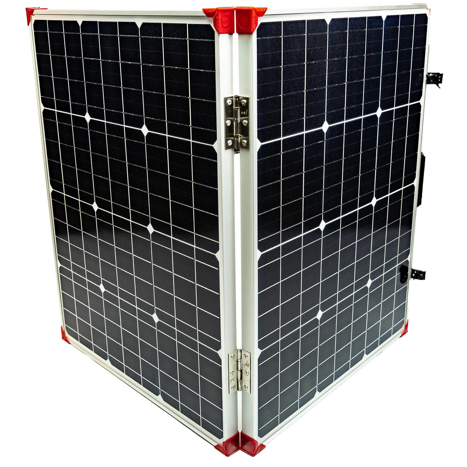 Harness the power of the sun and power your electronic devices with Lion Energy s Lion 100 Solar Panel. A rugged piece of tempered glass surrounded with a rustproof aluminum enclosure mean this 100-Watt panel is ready for everything you can throw at it. Take it camping, tailgating, to the construction site, the cabin, or wherever you need power. Adjustable legs allow you to keep your panel pointed directly at the sun for optimal solar charging. You even have the option to link multiple panels together for faster charging. The folding solar panel with handles provides portable power to an energy storage device like our Lion LT. The Lion 100 Solar Panel is ideal for a convenient and clean, renewable power source.