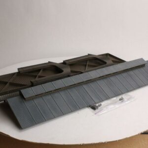 Lionel Gray O Gauge Covered Bridge Model Train Non-Operating Accessory will be a great addition to any train layout. A common sight on rural mainlines, covered bridges often took their share of wear and tear from the elements. Features a prototypical look which includes the wood paneling sides, roof tops and roof venting system. Approximately two feet in length, the all-new Lionel Covered Bridge is designed to accommodate O-27 gauge, O gauge, and FasTrack sections.
