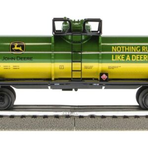 Lionel John Deere GP38 Electric O Gauge Model Train Freight Set with Remote and Bluetooth Capability will be perfect for the John Deere enthusiast or model railroad fans alike. For 180 years, John Deere has embodied quality, integrity, and innovation throughout the globe, living up to the company slogan, Nothing Runs like a Deere. Train showcases the founding year of John Deere, the leaping deer logo and is painted in the infamous John Deere green and yellow colors. We have upgraded this set with Bluetooth 5.0 technology and incorporated the Lionel Voice Control (LVC) feature that allows you to operate your locomotive by speaking commands into your phone via the Lionel Lion Chief App. The new Voice Streaming and Recording (VSR) feature allows you to use the Lionel Lion Chief App to record your own voice and use the recording as a custom train announcement on your engine, or you can stream your voice live through the engine. This train set includes a locomotive, train cars, track, remote control, and power supply.
