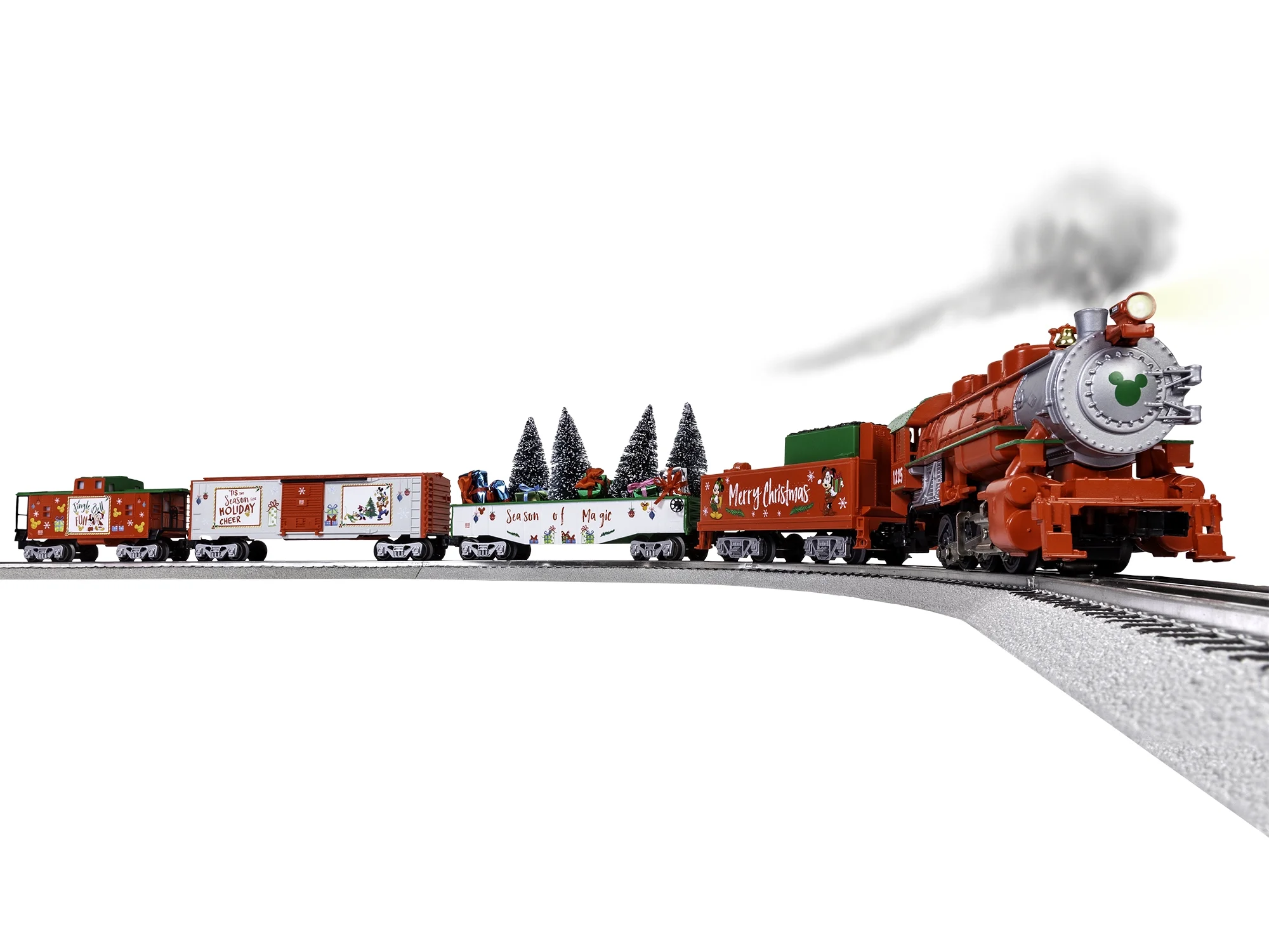 Lionel Mickey Mouse & Friends Christmas Electric O Gauge Model Train Set with Remote and Bluetooth Capability brings the magic of Christmas and the wonder of Disney to your home this holiday. Mickey, Minnie and the gang are celebrating a holiday to remember. They’re getting into the Christmas spirit by decorating and gathering presents while enjoying the company of good friends. This set is perfect for the Disney enthusiast who fancies treasuring Mickey & Friends memorabilia. Lionel Ready-to-Run Sets have everything you need to get started, including a locomotive, cars, track, remote control and power supply. LionChief System features enhanced sound, long distance control, is AC/DC compatible, easy to set up and operate LionChief Bluetooth App allows you to control full operation and sounds directly from your Bluetooth-enabled smart phone or tablet and operate multiple locomotives from the same device. FasTrack System has a fantastic prototypical look, is easy to use and features a snap-together locking mechanism for tight, reliable connections.