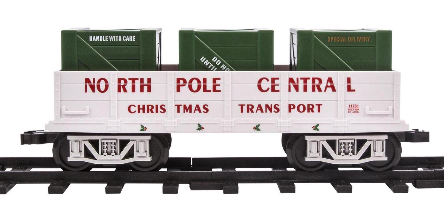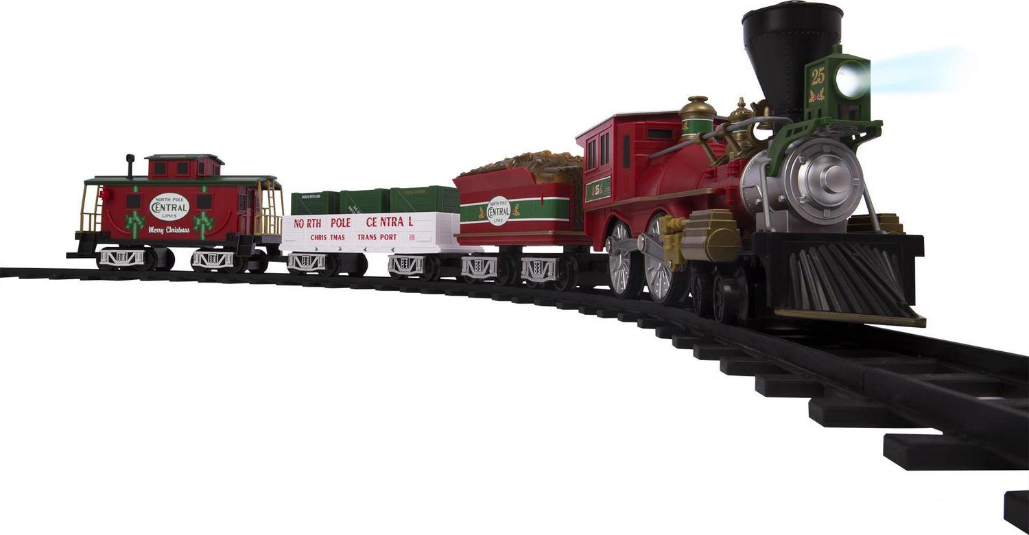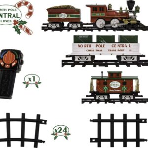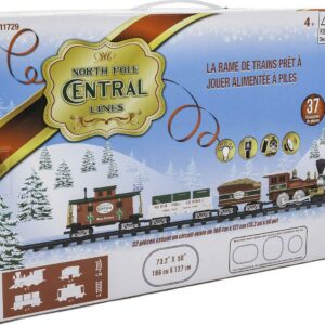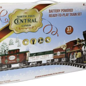 Complete the holidays with a model train set that looks as festive next to the Christmas tree as it is fun with the Lionel Trains North Pole Central Ready to Play Christmas Train Set. This toy train features a detailed holiday themed locomotive with lights and realistic bell and whistle train sounds. It also comes with train cars like a tender, gondola with Christmas crate load, and caboose with fixed knuckle couplers. Enjoy the fun RailSounds RC sound system with steam chuffing, background sounds, horn, bell, and more. You can control it all from the included RC remote. Bring the joy of classic Lionel trains to your living room this holiday season with the Lionel Trains North Pole Central Ready to Play Christmas Train Set. Note: NOT compatible with Lionel G Gauge track systems.