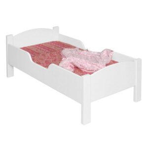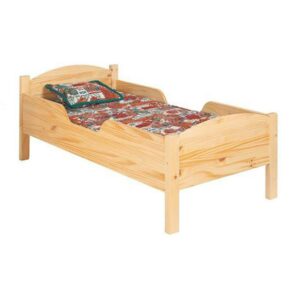 Traditional Toddler Bed – SW – Solid White/No Cut – 088SWNC A transitional bed for the toddler who is ready to leave the crib. Safety dictates our design – the bed is low to the ground and features effective roll-out protection on all four sides. Toddlers always love this special bed since it is their own size and can accommodate their standard crib mattress and bedding. Quick and simple assembly also makes this bed easy to store when not in use.Recommended for ages 18 months to four years. Available in natural, honey oak, espresso, white, linen, pink, lavender, and unfinished.Since we manufacture all Little Colorado products in our own facility, they start out as raw wood, plywood, or MDF. We can offer every piece unfinished at lower prices if you would prefer to stain or paint it yourself.Minor re-assembly required.