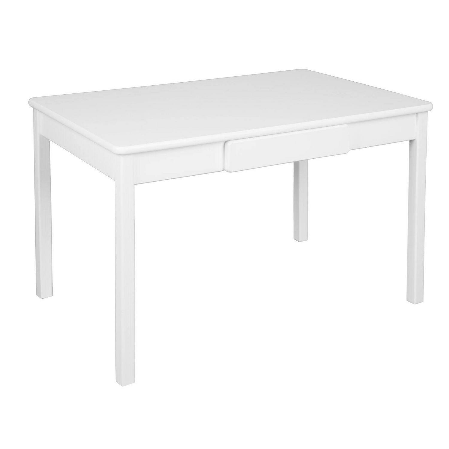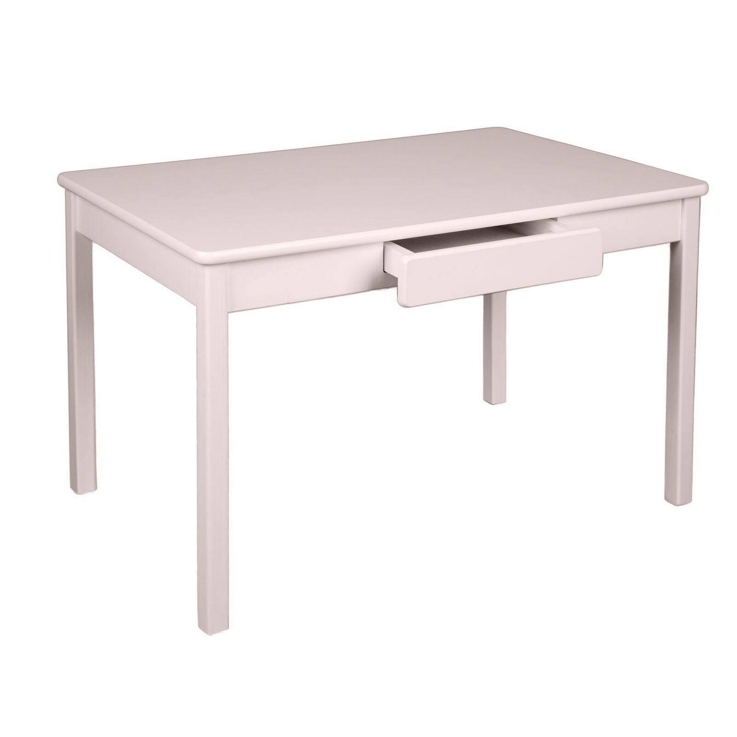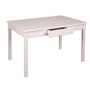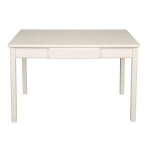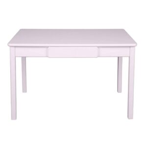 The Arts and Crafts table features two storage drawers. It is large enough to accommodate four to six children. Works well with the solid back chairs. Recommended ages two to seven years. Available in natural lacquer, pickled white, honey oak, solid white, linen, soft pink, powder blue, lavender, light green, and unfinished.
