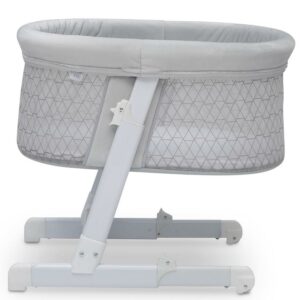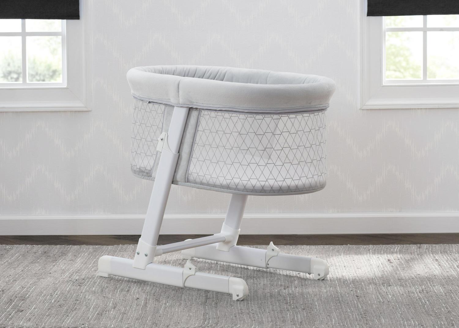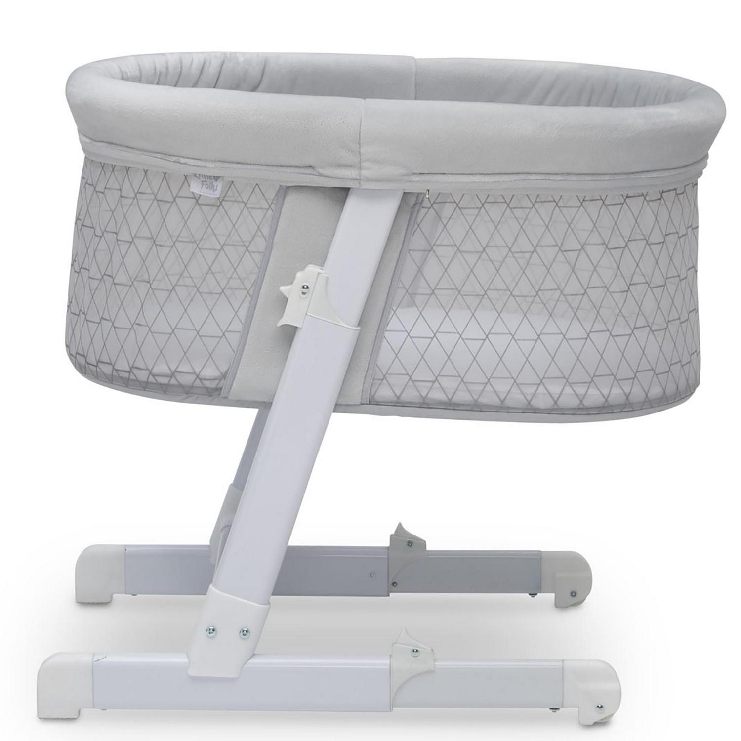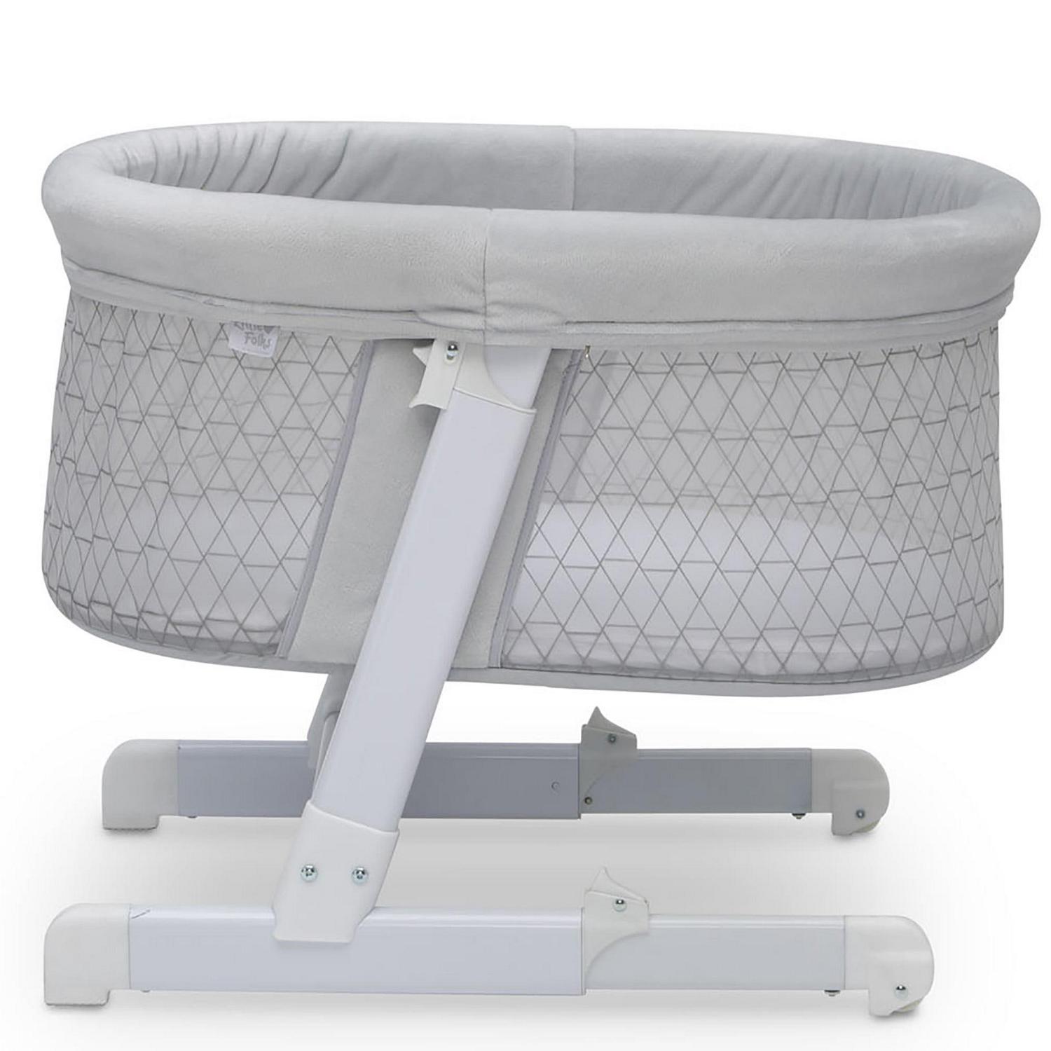 Keep your newborn nearby in the Little Folks Oval Bedside Sleeper Bassinet by Delta Children. As safe as it is stylish, this newborn bassinet features a sleek geometric pattern and makes it extremely easy and safe to room share with your little one from birth to five months. Its five height levels allow you to lower or raise the bassinet as needed. Raise it to one of the higher levels, and keep it near your bed so you can tend to your newborn at night. Lower it while seated so your baby can see you clearly. Slightly tilt the bassinet to engage the wheels that allow you to easily move it from room to room. The included mattress pad offers a firm, comfortable surface to sleep on while mesh sides provide a clear view of baby and help air circulate. A must-have for new parents, the Oval Bedside Sleeper Bassinet helps makes the first few months with your baby stress-free by providing a safe room-sharing option for your family. The removable mattress cover is machine washable for easy cleanup.