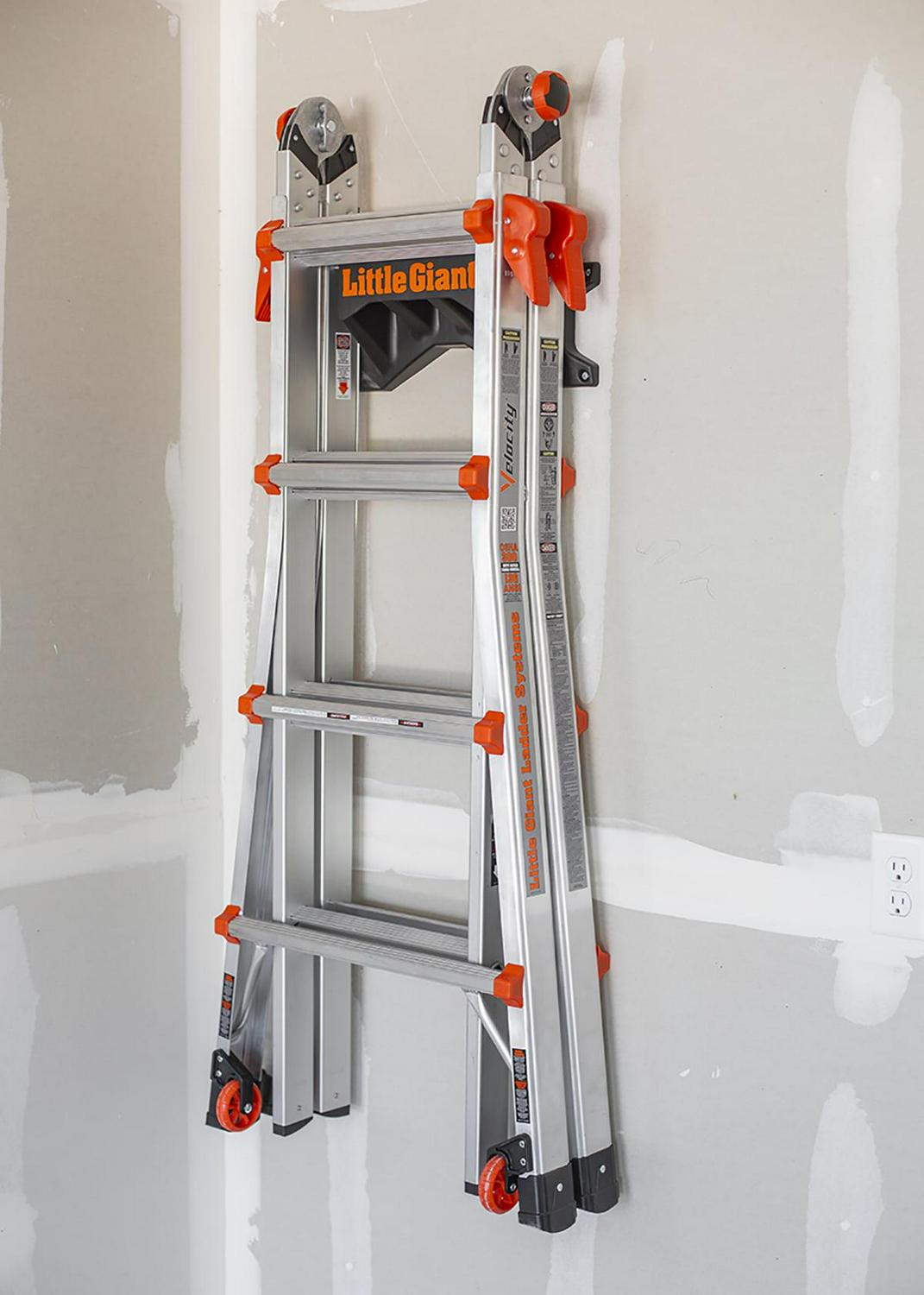 When not properly stored, your ladder can become a tip or trip hazard, which can cause damage or injury to yourself, your ladder or your property. The Ladder Rack from Little Giant Ladders helps you save space, while protecting your ladder from damage. This accessory mounts to the studs in the wall at the 16 center; and holds up to 75 lbs.