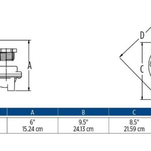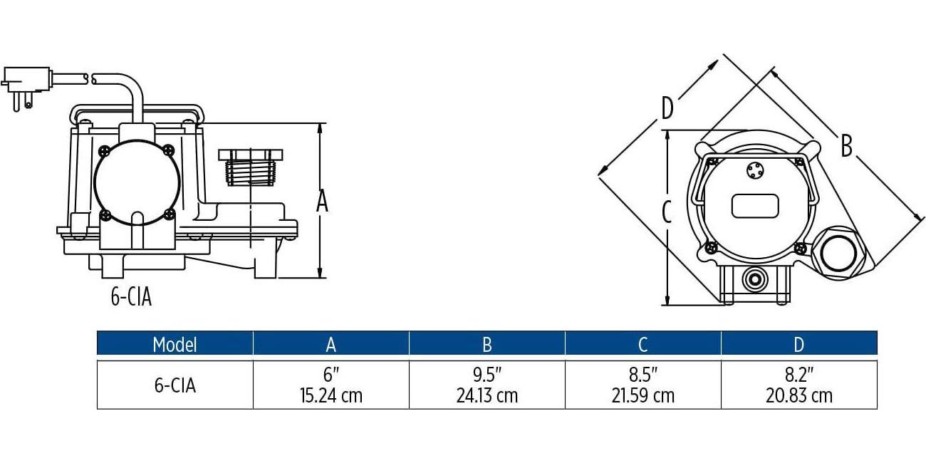 – Switch type/operation: Integral diaphragm, activates pump automatically: Off level, 1-4 inches; on level, 7-10 inches