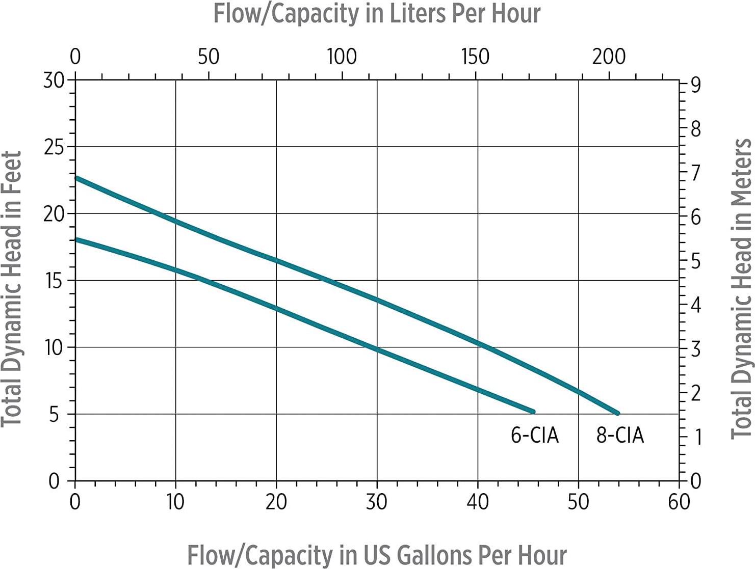 – Performance (GPM at height in feet): 5 feet, 46; 10 feet, 29; and 15 feet, 12.5