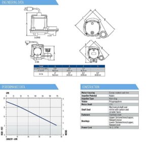 – Applications: Basement sumps, de-watering, and water transfer