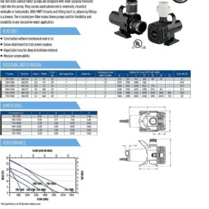 – APPLICATIONS: wet rotor pump construction without mechanical seal or oil is ideal for ponds up to 1200 gallons; 1.5-inch MNPT and SPIG discharge