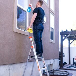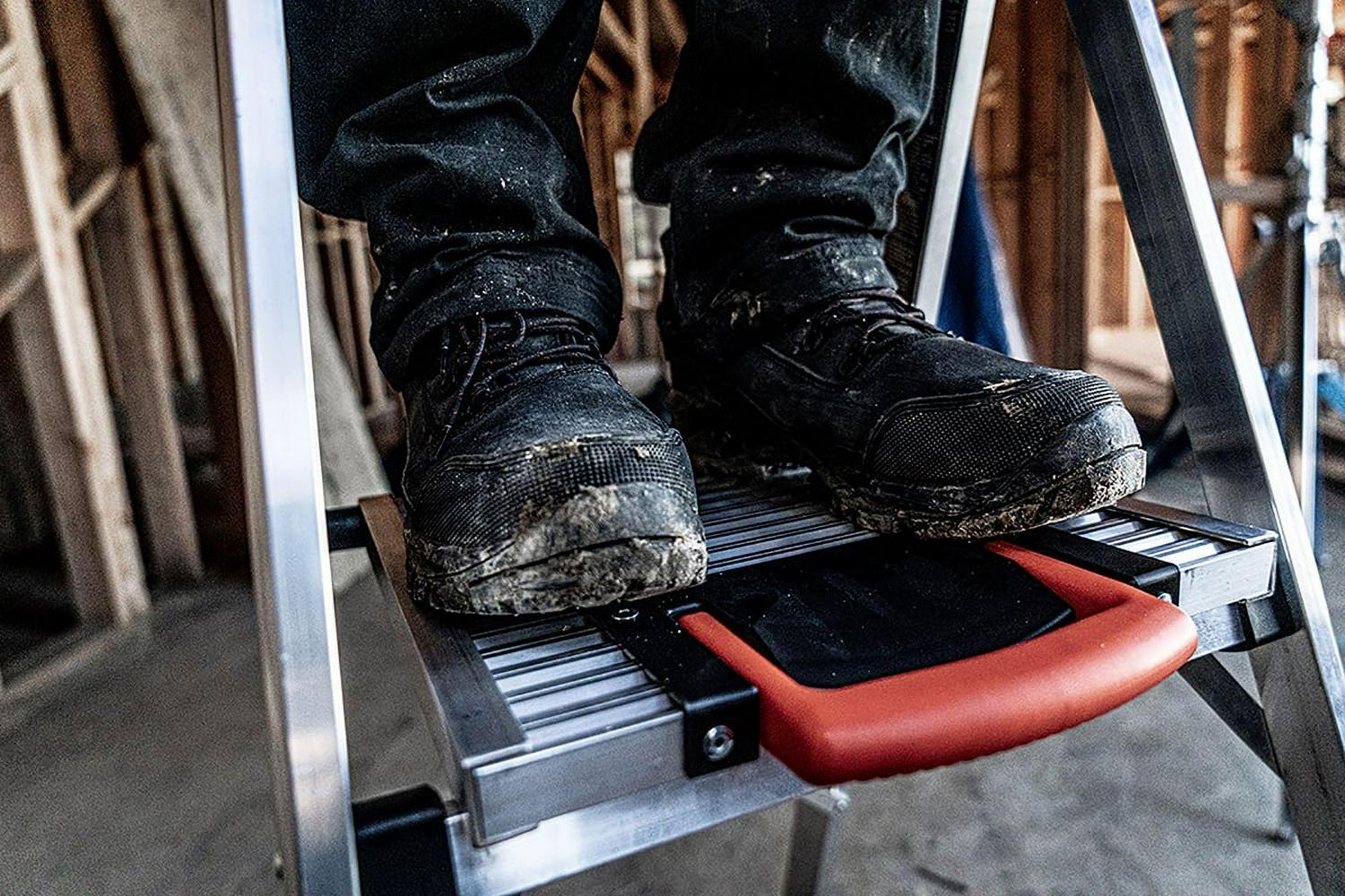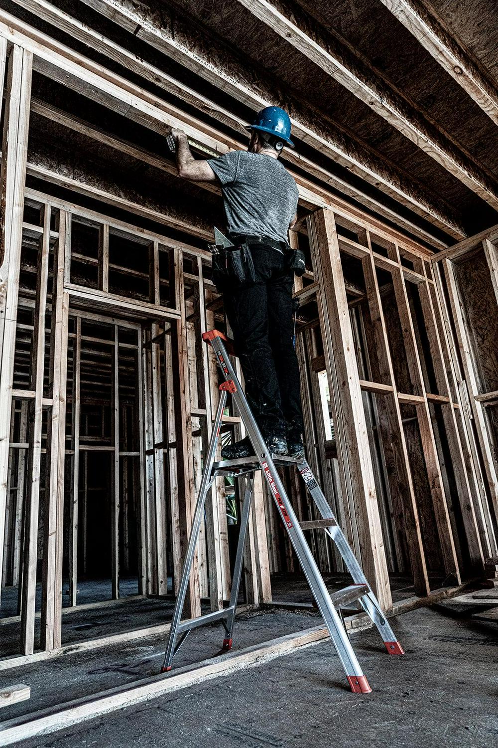 As you climb your Flip-N-Lite, you will notice the extra-wide rungs with treads to prevent foot fatigue. Upon reaching the top of the ladder, you can stand on the square standing platform, which reduces dangerous falls and is comfortable to stand on for extended periods while working.