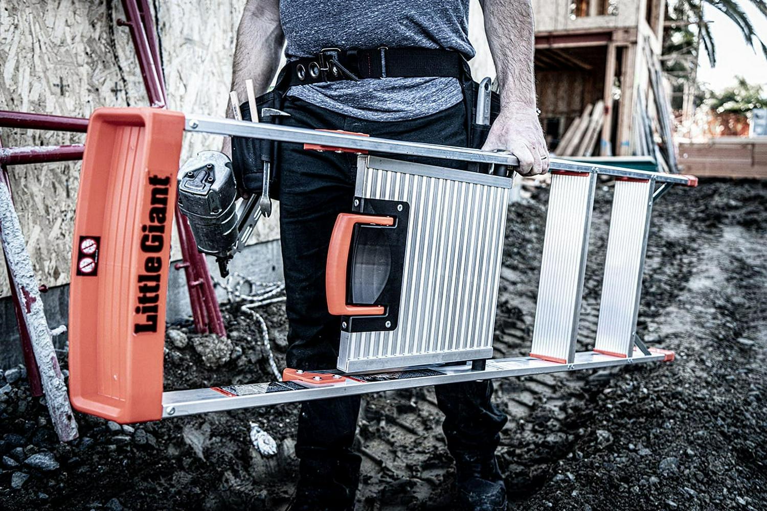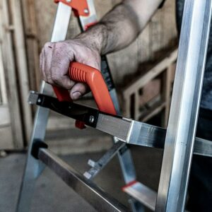 The Flip-N-Lite is the perfect stepladder to help you reach those out of reach areas at the job site. Transport and set up your ladder with ease. The Flip-N-Lite can be carried, set up and collapsed with one hand for simple operation. On a regular step ladder, for safety it is stated that you do not stand on the top cap or the top rung. Little Giant has removed that top rung to keep the user from standing on it, and in turn made a large standing platform at the highest standing level. Keeping the user safe and secure.