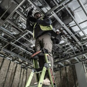 Made from lightweight, durable fiberglass, you can work around electricity without fear of conductivity. The Hi-Viz green color also promotes increased visibility to decrease ladder bumping.