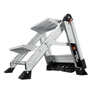 EXTRA-WIDE FEET: With its extra-wide, slip-resistant feet the Jumbo Step is perfect for working over grates. Trust that your ladder will hold steady as you complete your tasks. For any task that doesn’t require a full-sized ladder, the Jumbo Step is the tool you need.