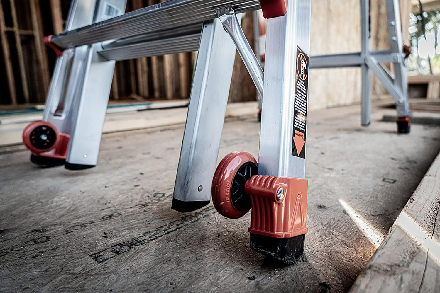 The Revolution was designed with you in mind. The Quad-Lock hinge and metal Rock Locks allow for quick and easy height and position adjustment. The Tip & Glide wheels help you move the ladder easily from job to job.