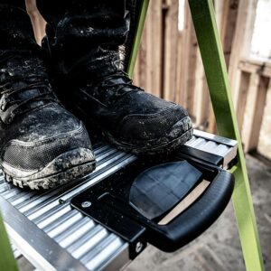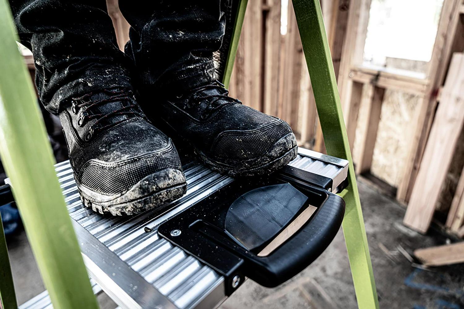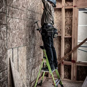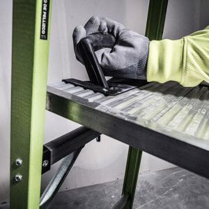 The MightyLite is a lightweight fiberglass stepladder that weighs 15% less than traditional fiberglass stepladders. The lightweight ladder reduces injuries associated from carrying heavy equipment. Plus, with its Hi-Viz green color, you will be able to avoid having people or objects bump into your ladder while it is in use.