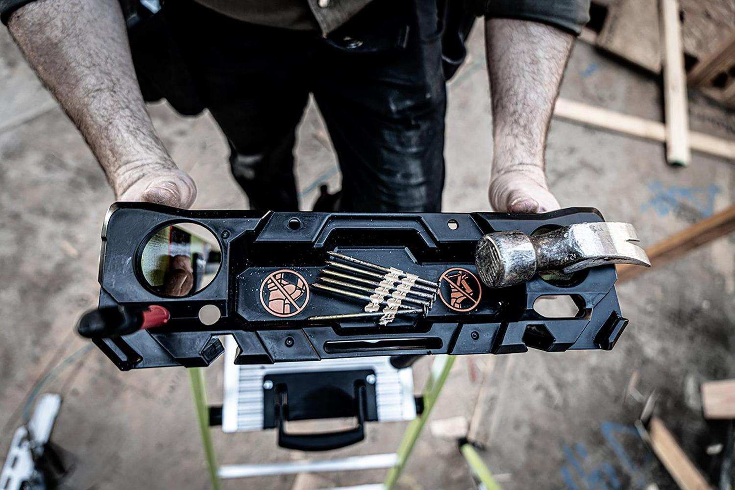 – innovative top cap allows to you keep all of your tools close at hand, no more trips up and down the ladder for tools or hardware