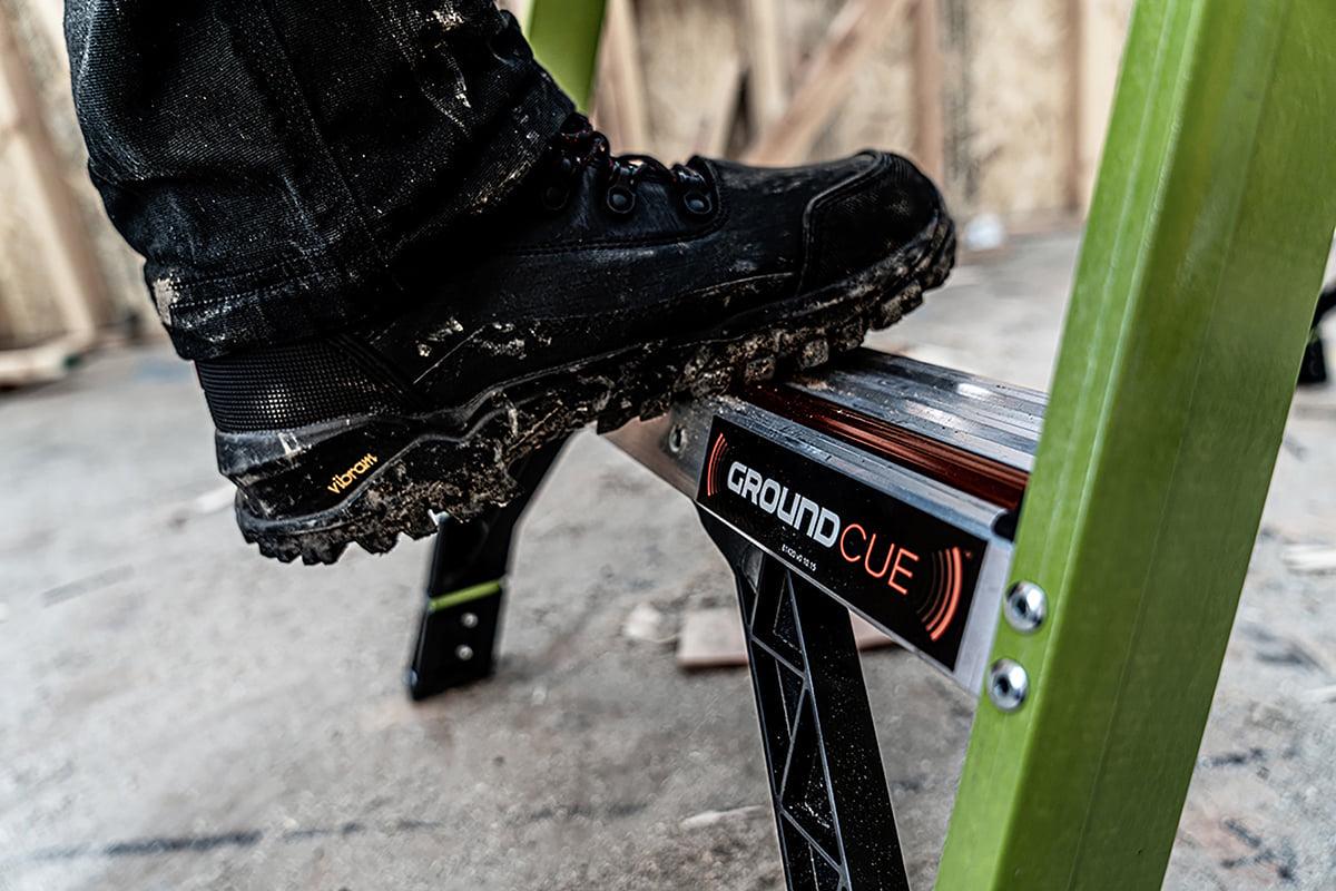 - Ground Cue prevents injuries by signaling the user when it is safe to dismount the ladder