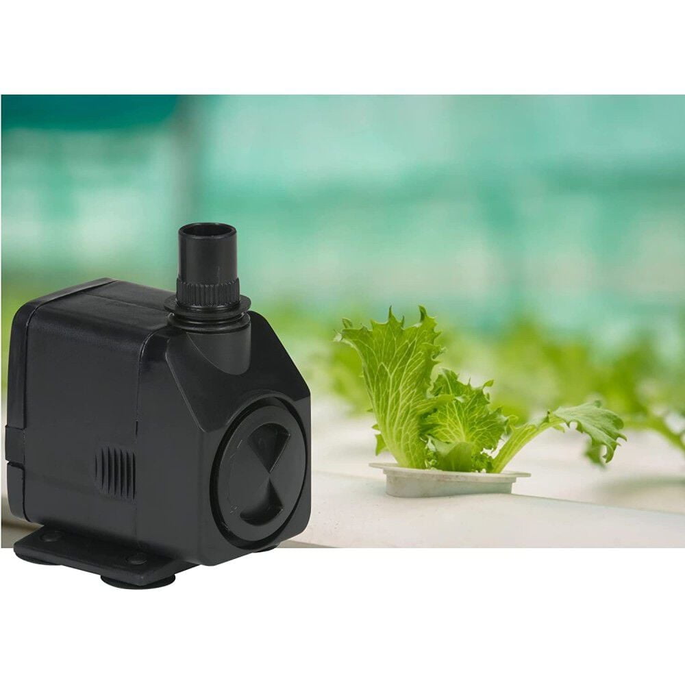 Submersible magnetic drive statuary fountain pump Corrosion resistant body specifically for submersible use Easy to install and maintain; 130 GPH capacity; 11-watts; 6-feet cord 5.5-Feet maximum pumping height, 5/8-inch or 1/2-inch barbed discharge Built-in adjustable flow control valve; 3 year warranty
