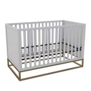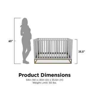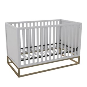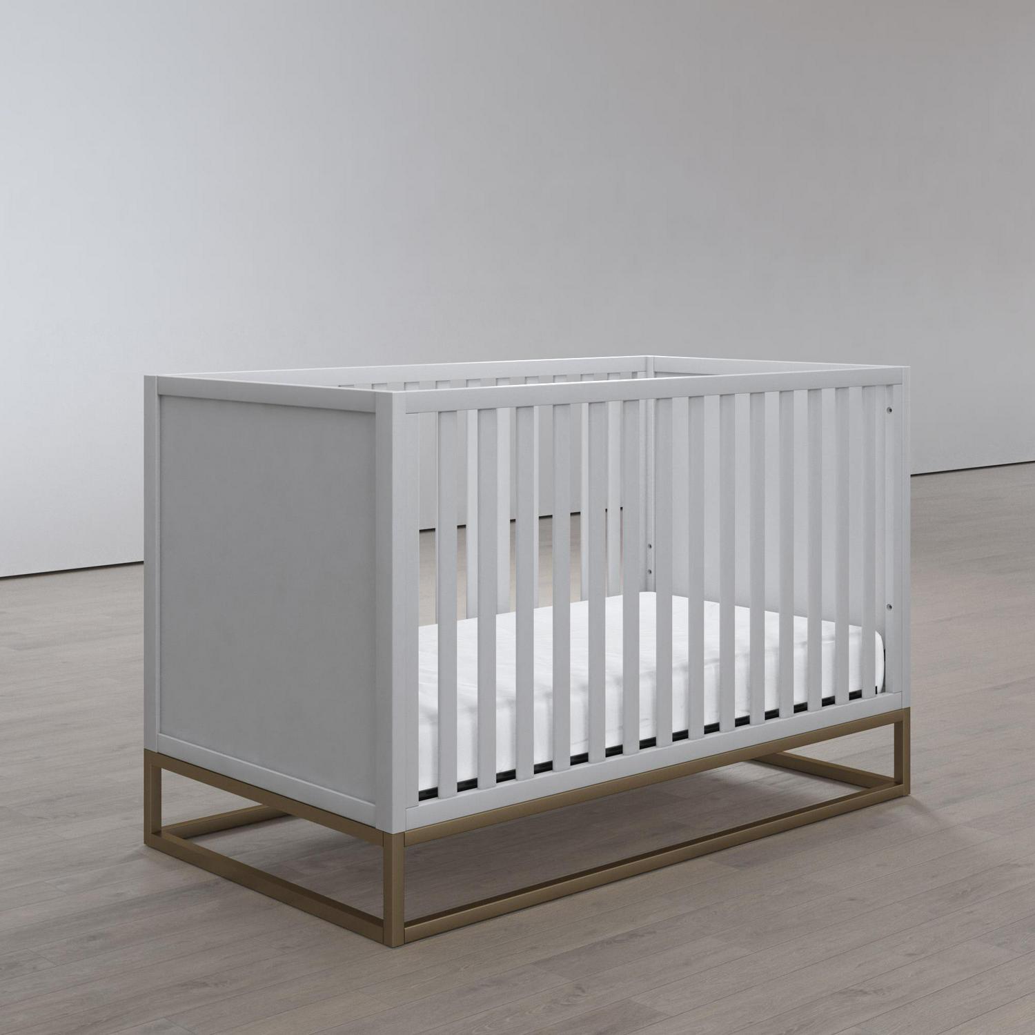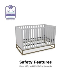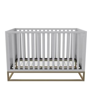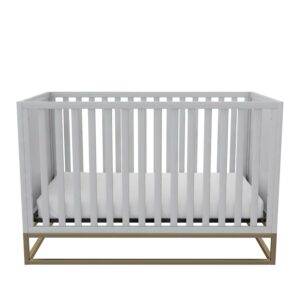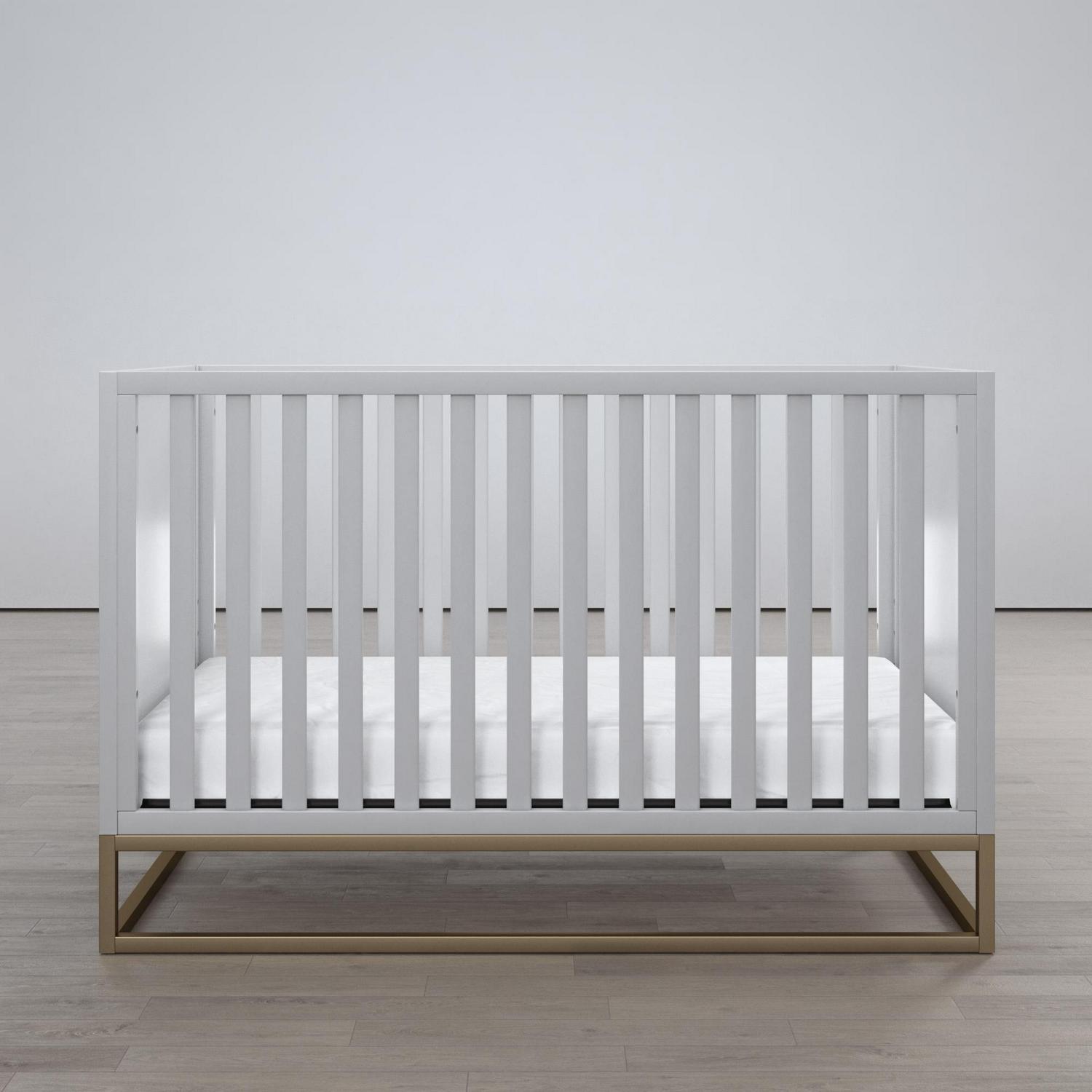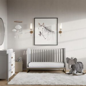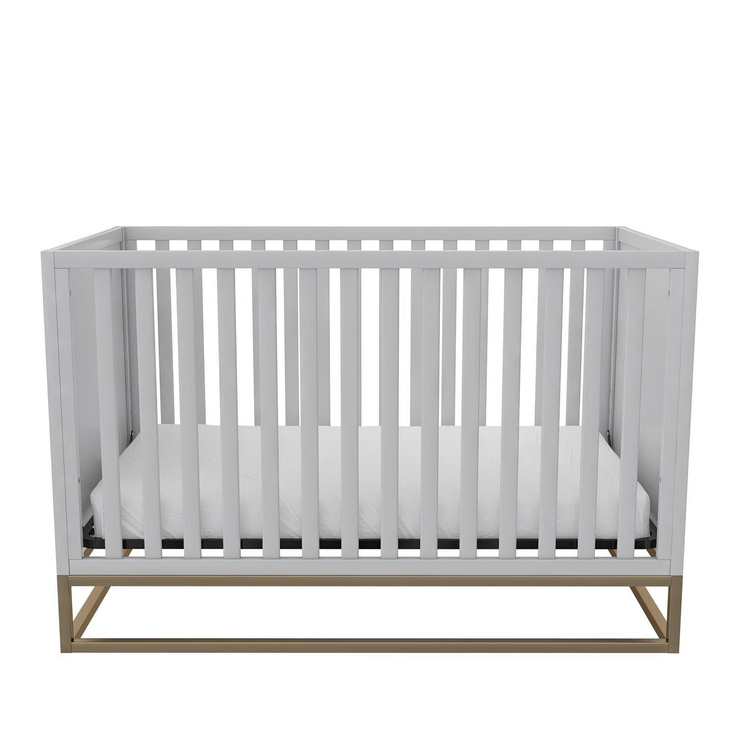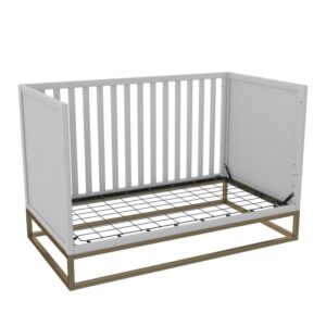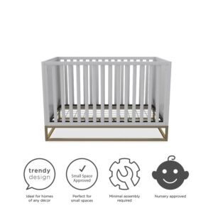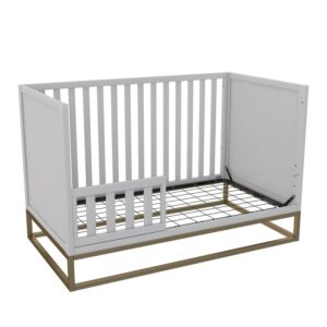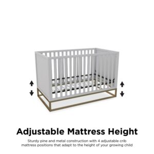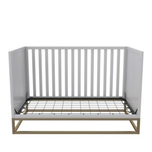 Little Seeds Haven 3 in 1 Convertible Wood Crib with Metal Base, Dove Gray with Gold Base
