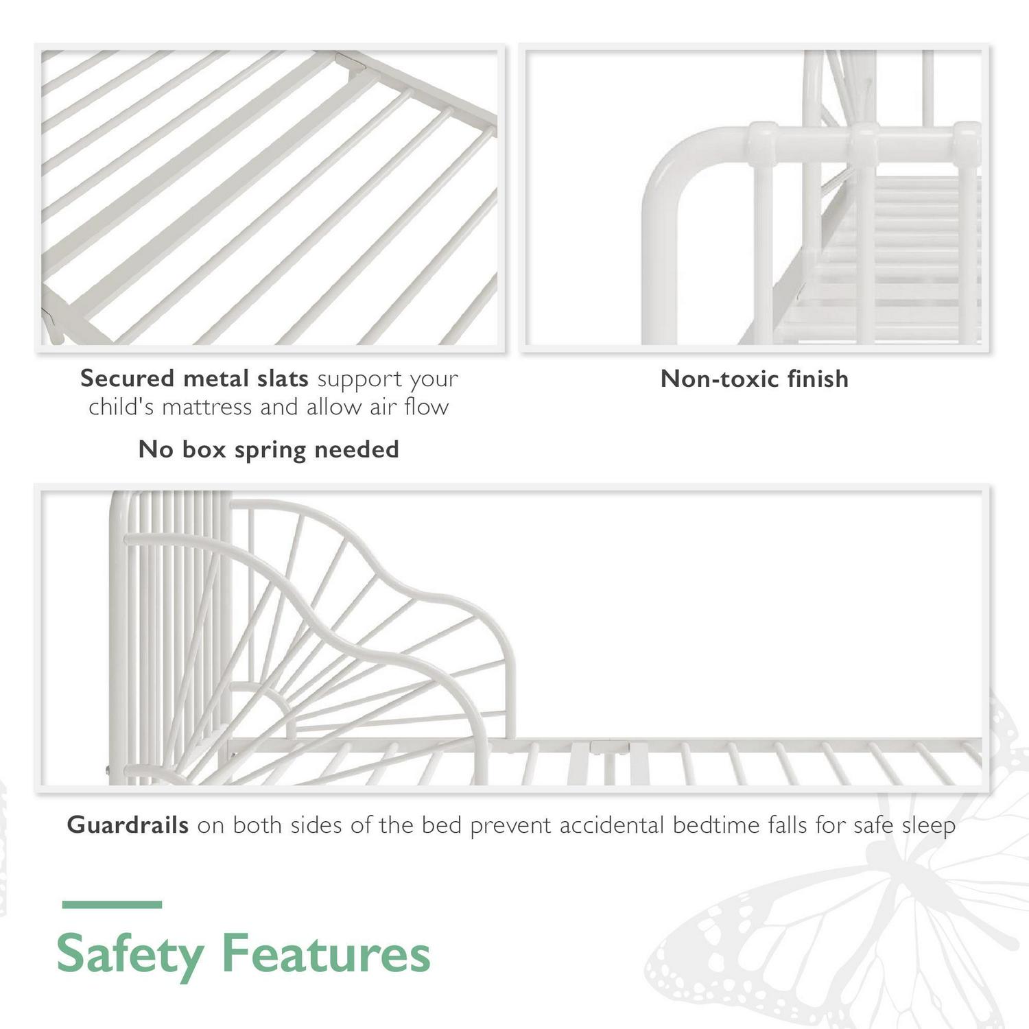 – Parents, don’t fret, your little boy or girl is totally ready for the next step and will fall in love with this whimsical metal toddler bed that gives them the perfect safe low height for getting in and out of bed without a helping hand