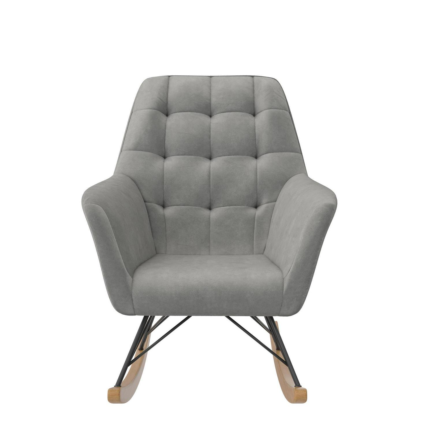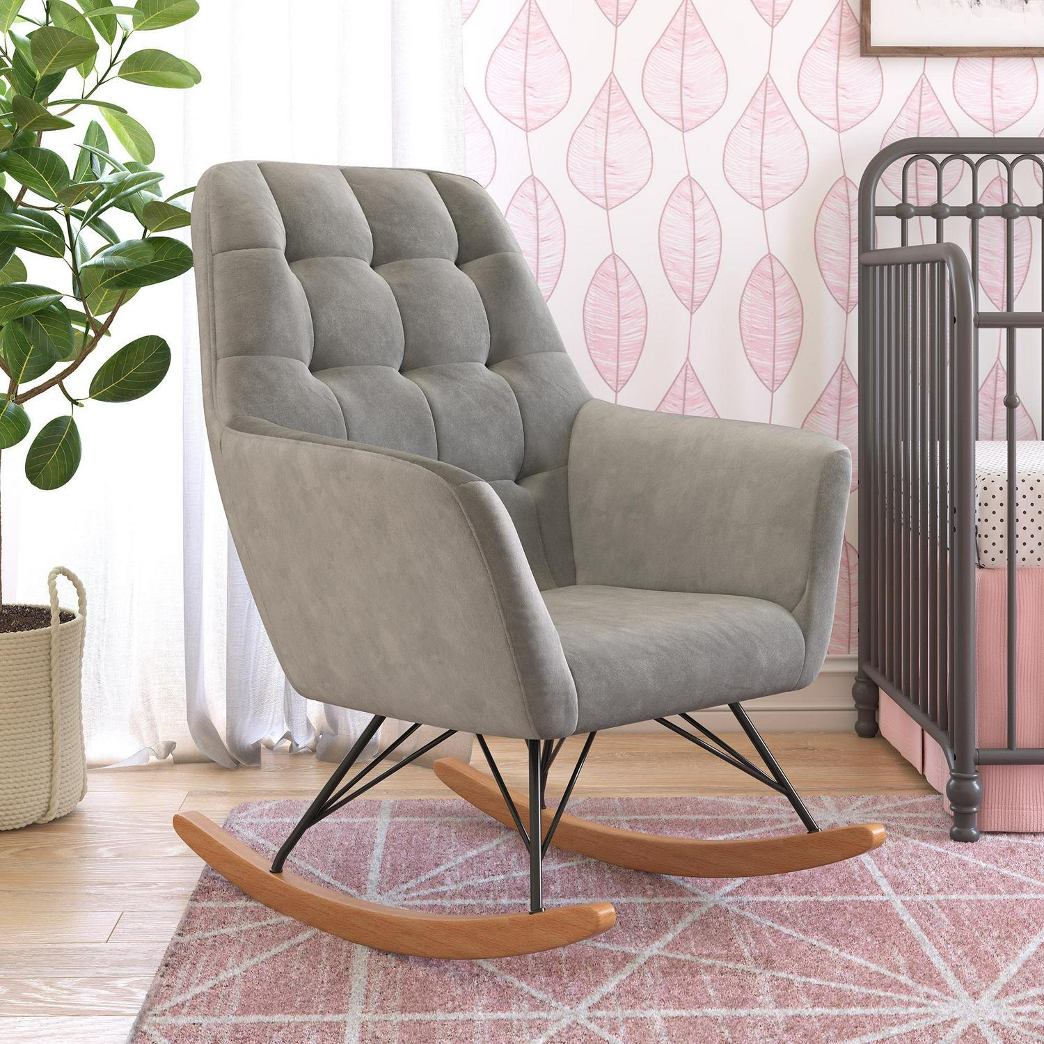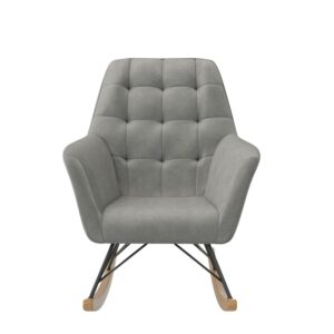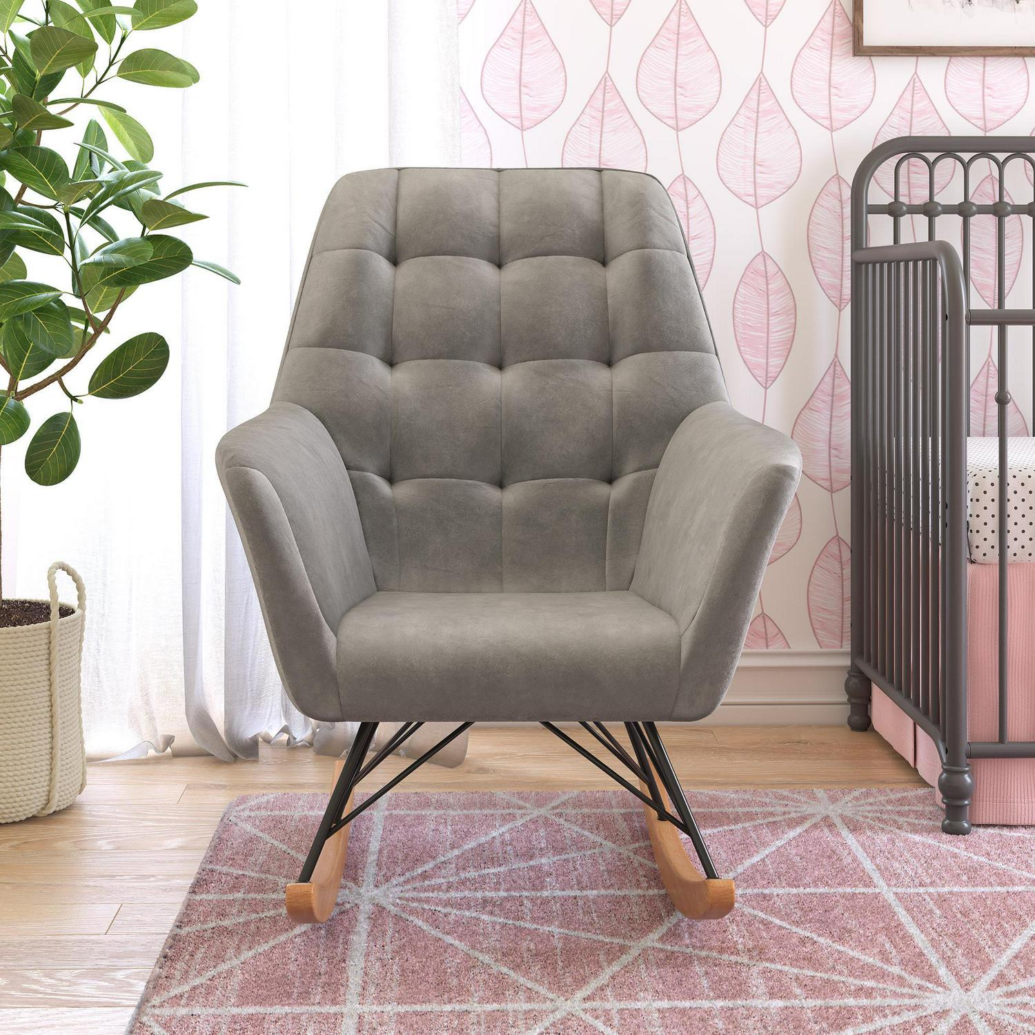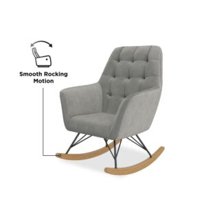 – CRADLED IN COMFORT: Midcentury modern nursery rocker with square tufting on the large and cushioned backrest sets a contemporary style tone, provides full body relief, and supports moms and dads as they sway back and forth with their darling infant.