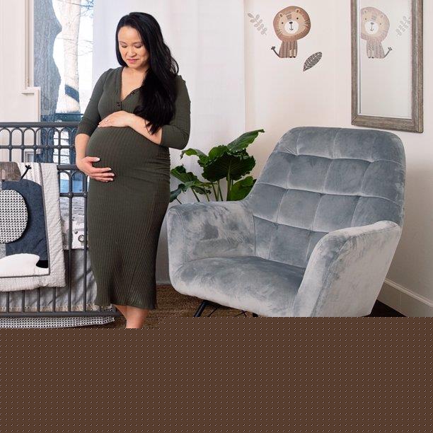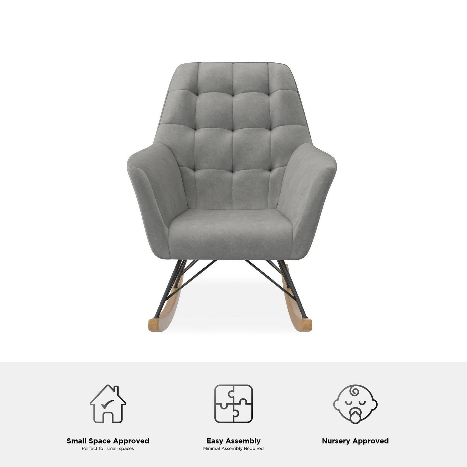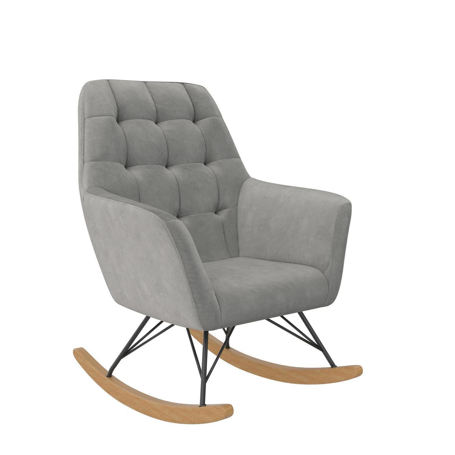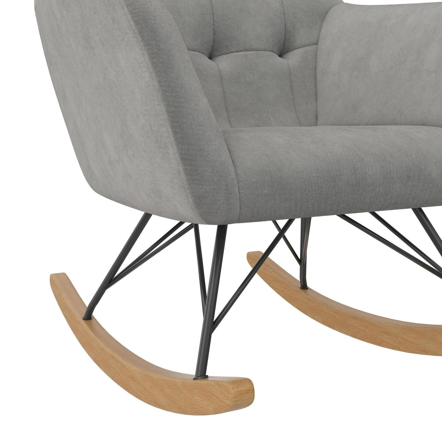 – CRADLED IN COMFORT: Midcentury modern nursery rocker with square tufting on the large and cushioned backrest sets a contemporary style tone, provides full body relief, and supports moms and dads as they sway back and forth with their darling infant.