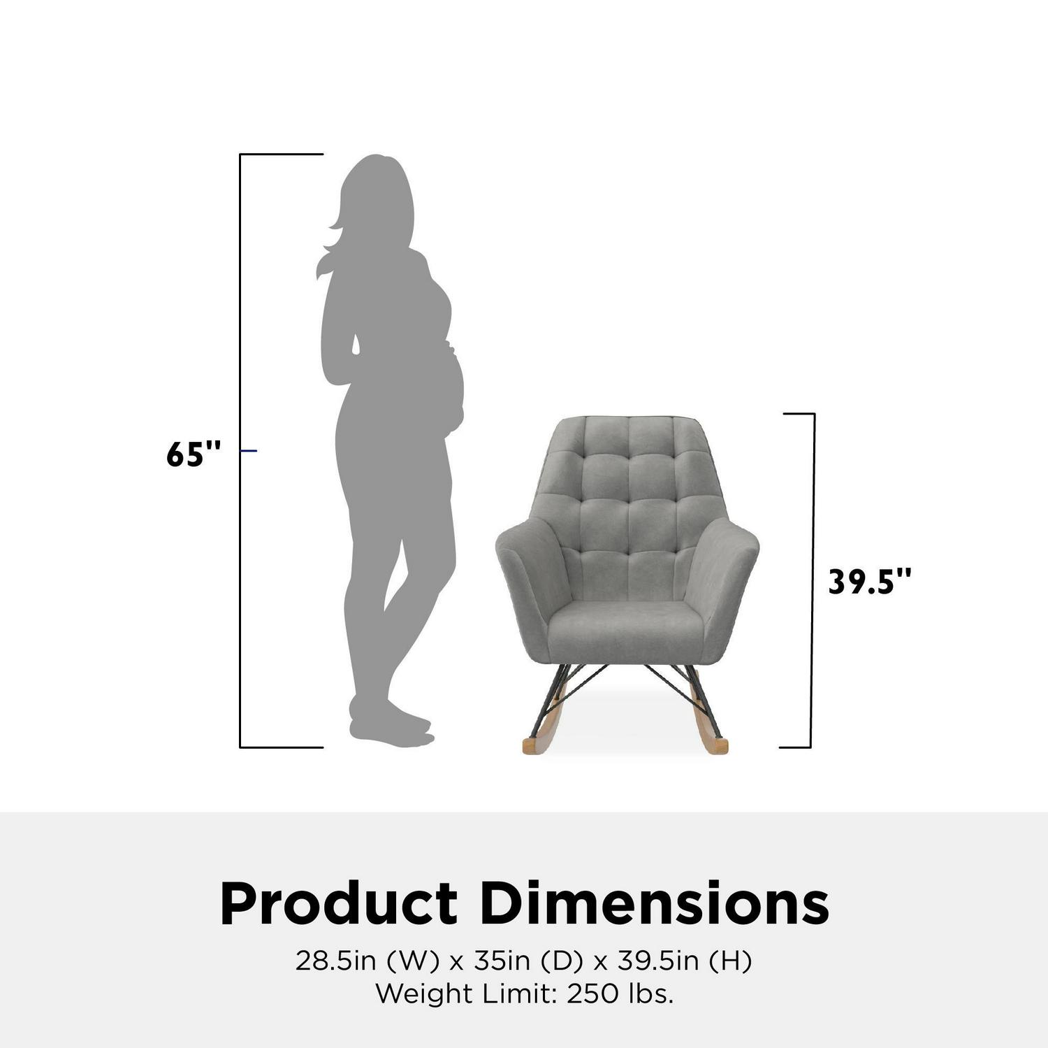 – SAFETY PROVEN: Rocker dimensions: 28.5″L x 35″W x 39.5″H. Weight limit: 250 lbs. Net weight: 27.5 lbs. Rigorously tested to meet safety standards and flammability requirements. Contains zero flame retardant chemicals. TSCA Certified for formaldehyde.