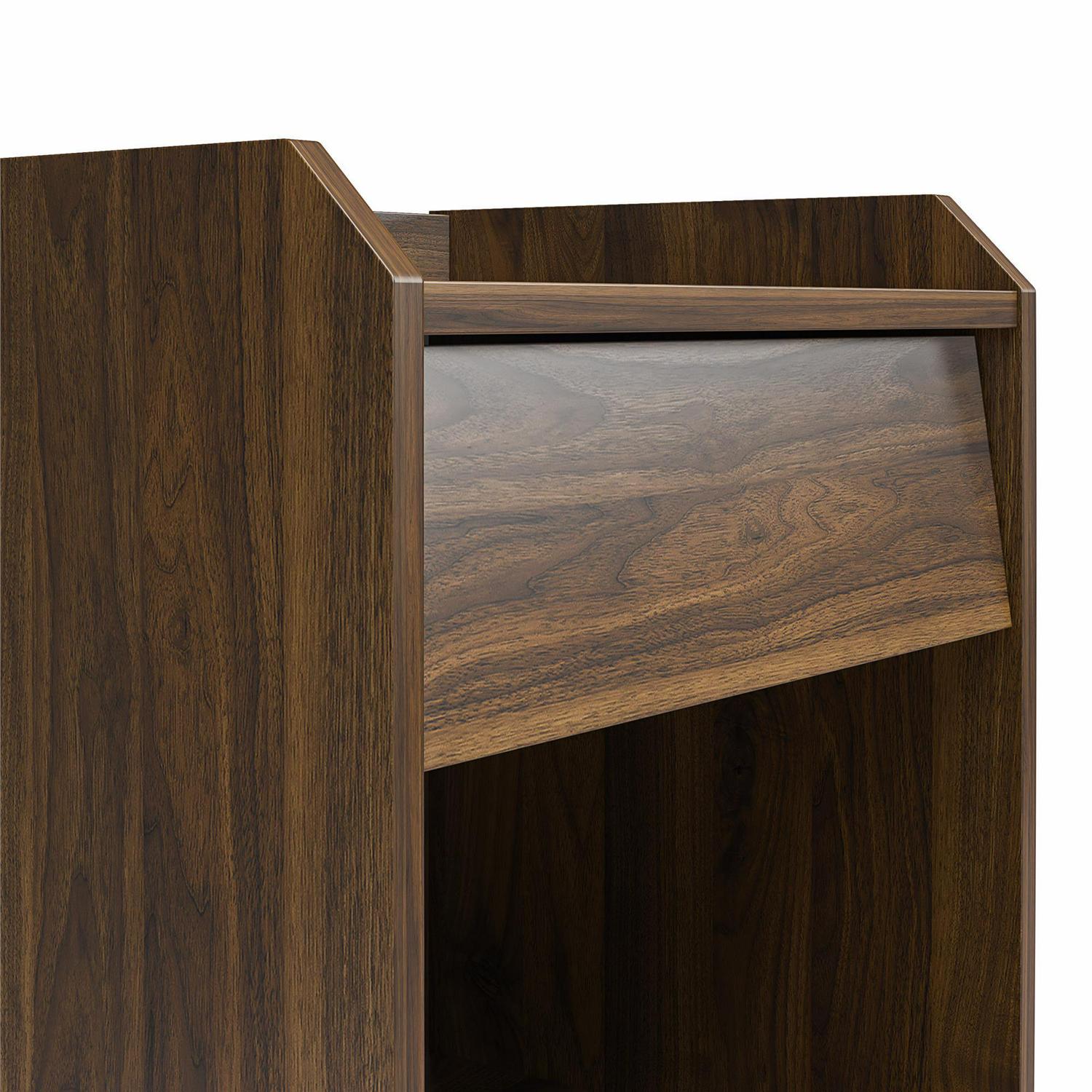 – Assembly required. Two adults are recommended to assemble. Once assembled, the Nightstand measures to be 19.6″ W x 15.9″ D x 27″ H. Drawer: 16.53″ W x 4.33″ H x 14.7″ D. Cubby: 18.42″ W x 11.57″ H x 15.55″ D