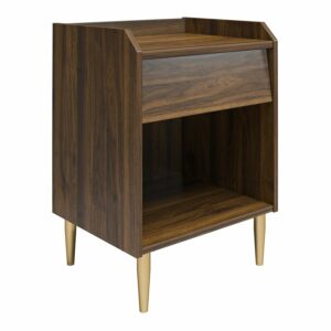 Your youngster may not yet have the wisdom that comes with age, but they’re bound to have instant style and an acute eye for the classics. (with a little help from you of course!) Take it back to simpler days with the timeless mid-century modern style of the Remy Collection from Little Seeds. Made from engineered wood, the Remy Nightstand features a vintage-style shingle drawer front, hidden drawer pull, and tapered brassy gold legs for a sleek polished look both you and your child will cherish. This refined Nightstand is perfect for your child’s nursery, bedroom, or playroom, and features a roomy drawer, complete with durable metal drawer slides and a built-in drawer stop for safety. The open shelf below is the ideal spot for their favorite stuffed pal, or bedtime storybooks. Pair with other complimentary Remy Collection bedroom pieces to complete the look. (each sold separately) The kids’ Nightstand meets or exceeds the CPSIA Juvenile testing requirements. Little Seeds offers this and many more on-trend baby-to-teen furniture pieces, and partners with various environmental protection programs to protect pollinator and other wildlife habitats for future generations. Assembly required. Two adults are recommended to assemble. Once assembled, the Nightstand measures to be 19.6″ W x 15.9″ D x 27″ H.