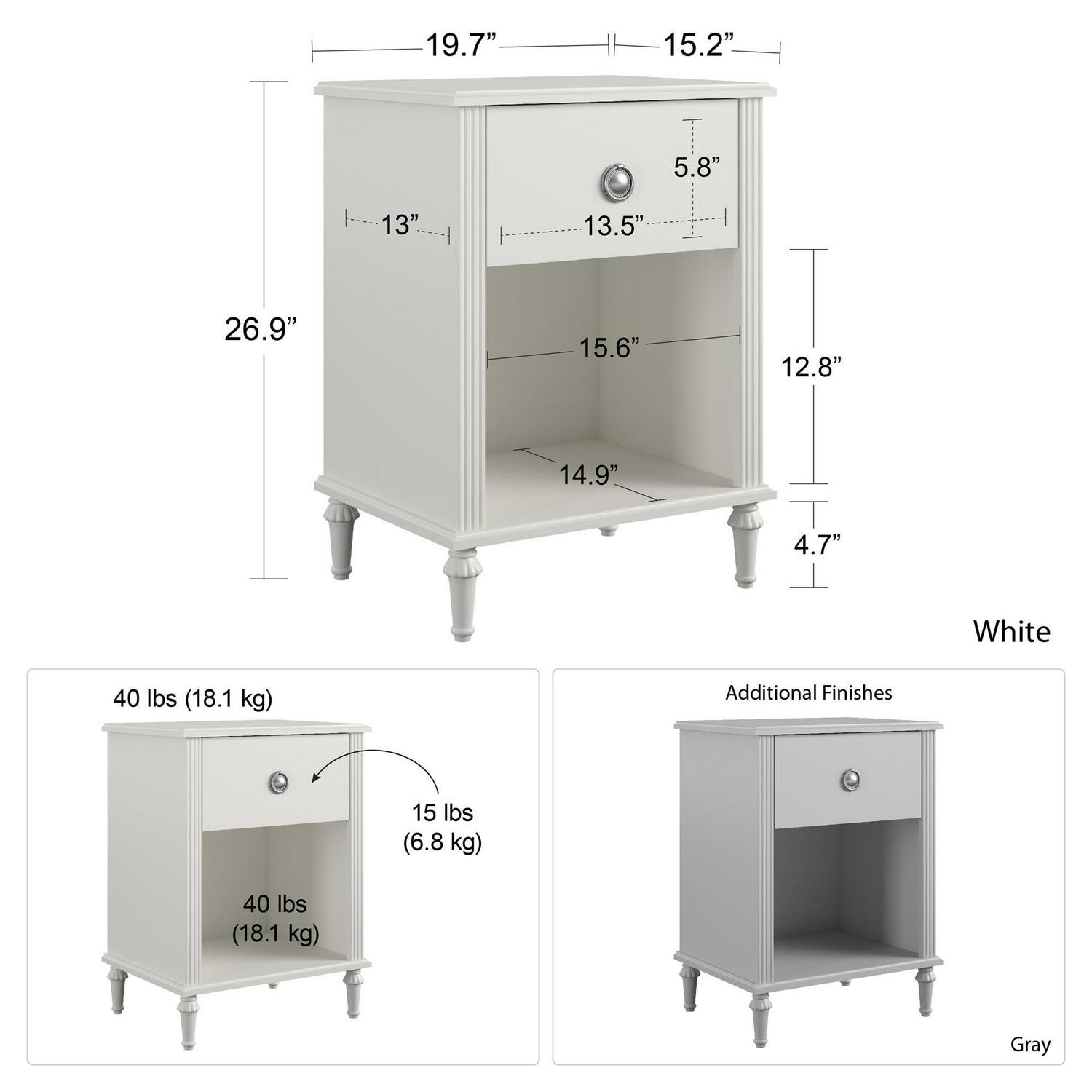 Your little one has most certainly outgrown her childhood bedroom and has been scouring the internet for teen bedroom ideas to transform her space from a kid’s playroom to her own sophisticated sanctuary space free from grown-up demands and rules. Let the Little Seeds Rowan Valley Arden White Kids’ Nightstand be an elegant addition to your child’s new grown up space. Made of laminated MDF and particle board with a chic white finish, an open cubby space for extra storage, and a posh silver ring drawer pull, this beautiful white kids’ nightstand will be a perfect piece for your child’s bedside storage needs. The Little Seeds Rowan Valley Arden White Kids’ Nightstand’s drawer features durable metal drawer slides with built-in stops, and the kids’ nightstand also meets or exceeds the CPSIA Juvenile testing requirements while also including a wall anchor kit to ensure your child’s safety. Little Seeds not only creates this and many more on trend baby to teen furniture pieces, we also partner with various environmental protection programs to protect pollinator and other wildlife habitats for future generations.