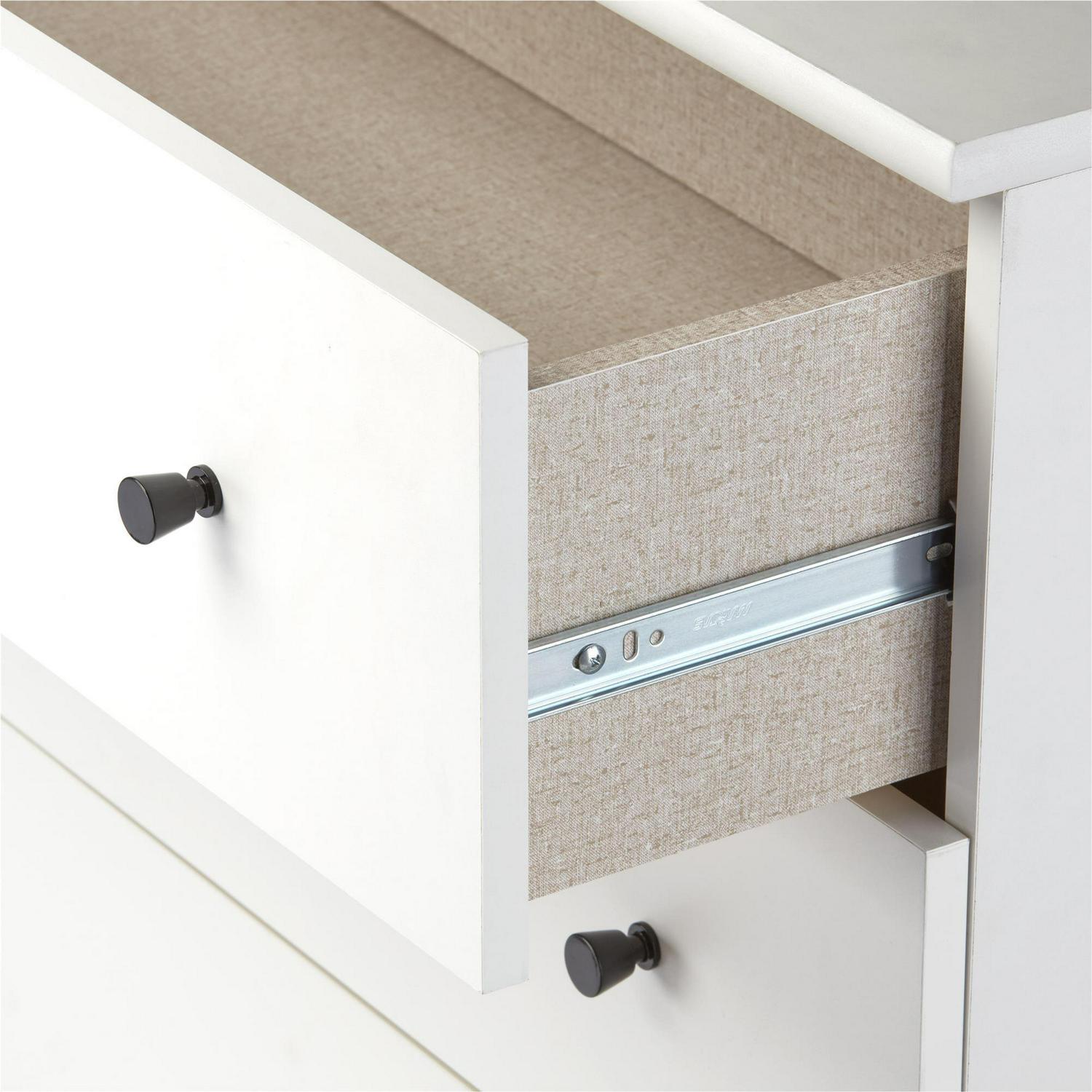 – The Dresser ships flat to your door and 2 adults are recommended to assemble. Dresser can support up to 50 lbs. and each drawer holds 35 lbs. Assembled dimensions: 33″H x 35.5625″W x 17.9375″D