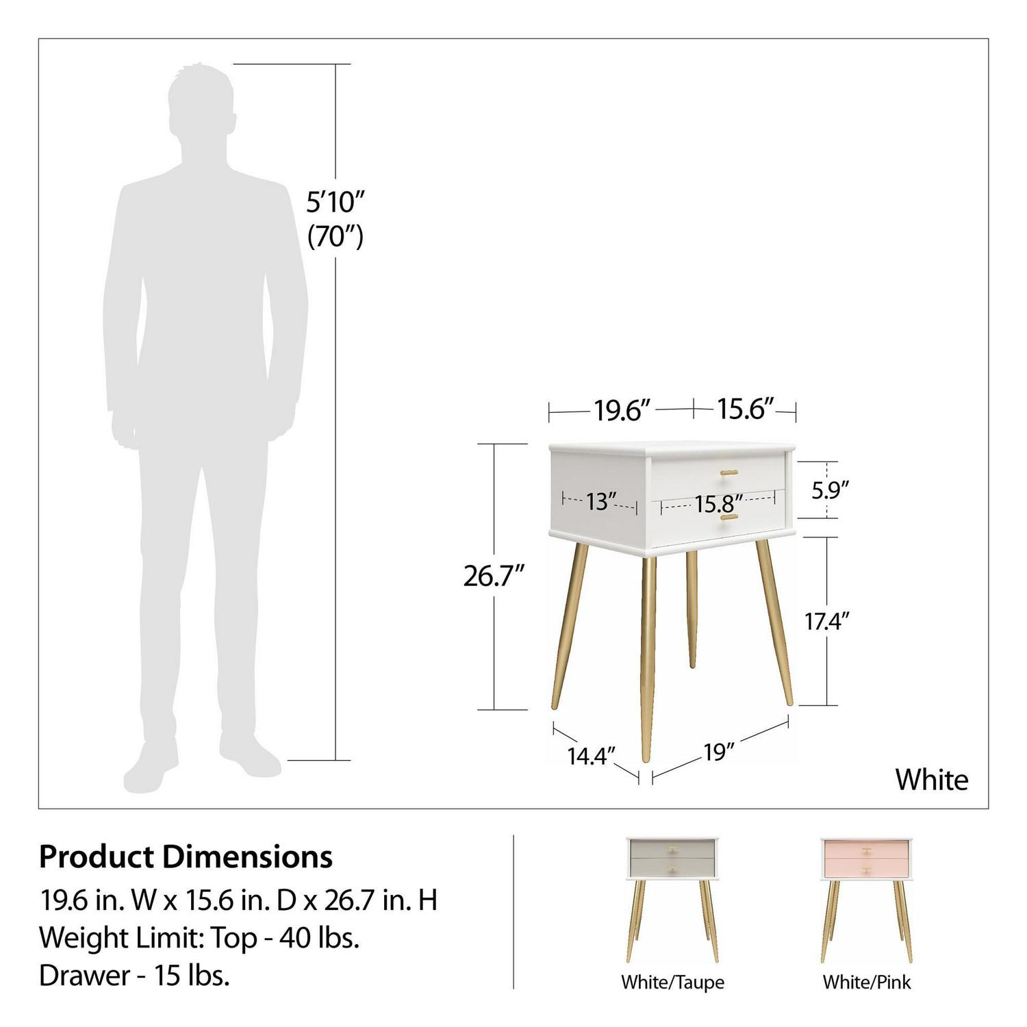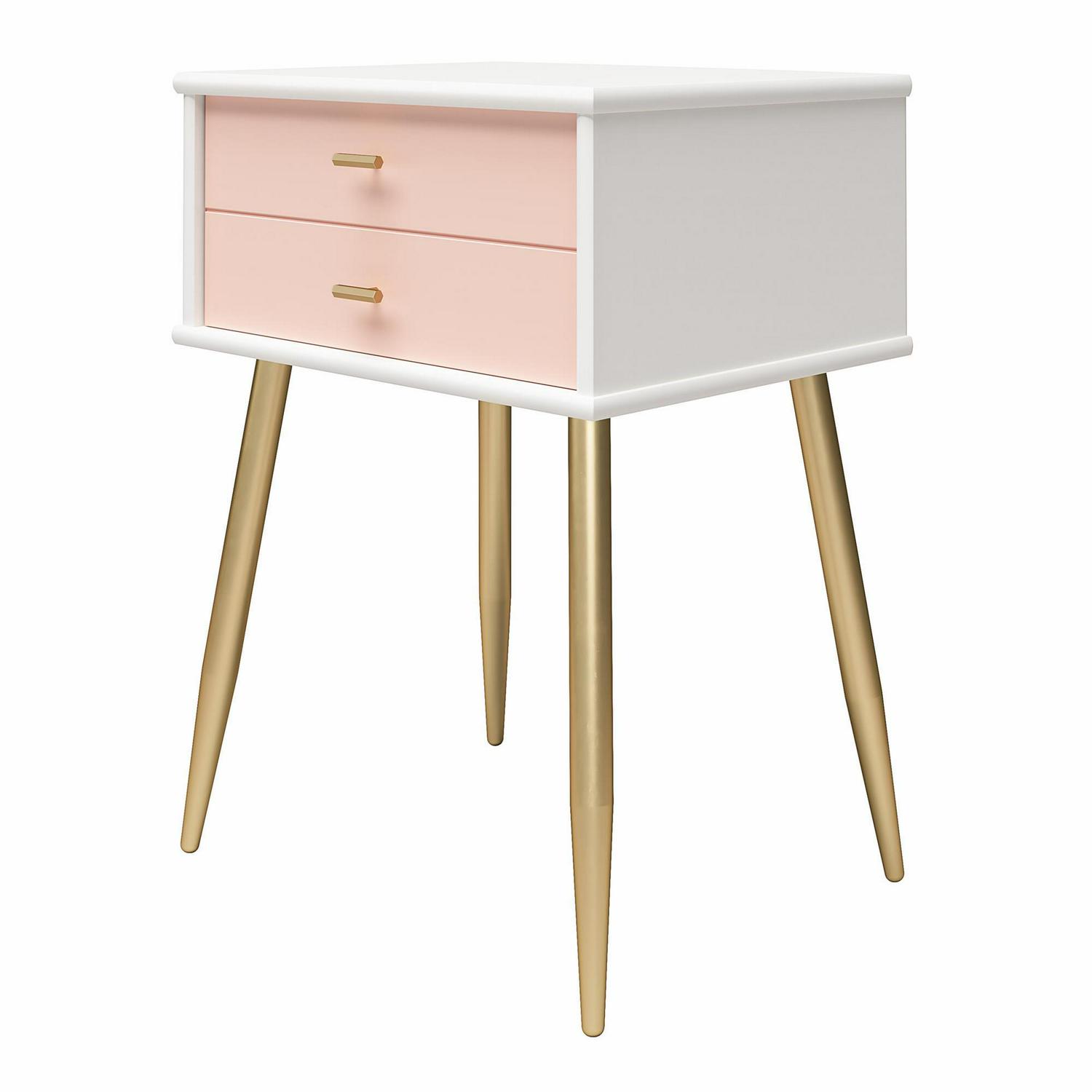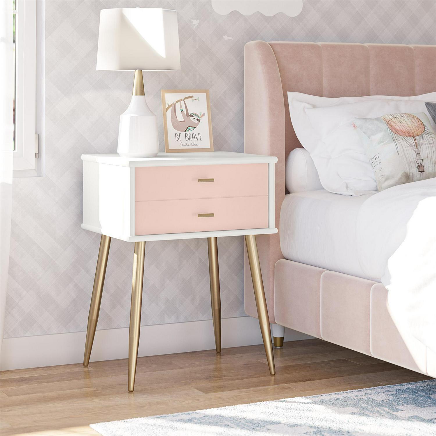 Little Seeds Valentina 1 Drawer Nightstand, White and Pink