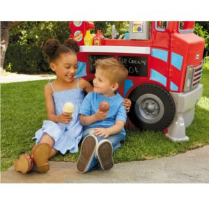 Little Tikes 2-in-1 Food Truck 20-Piece Plastic Pretend Play Kitchen Toys Playset with Working Cash Register, Red- For Kids Toddlers Girls Boys Ages 2 3 4+