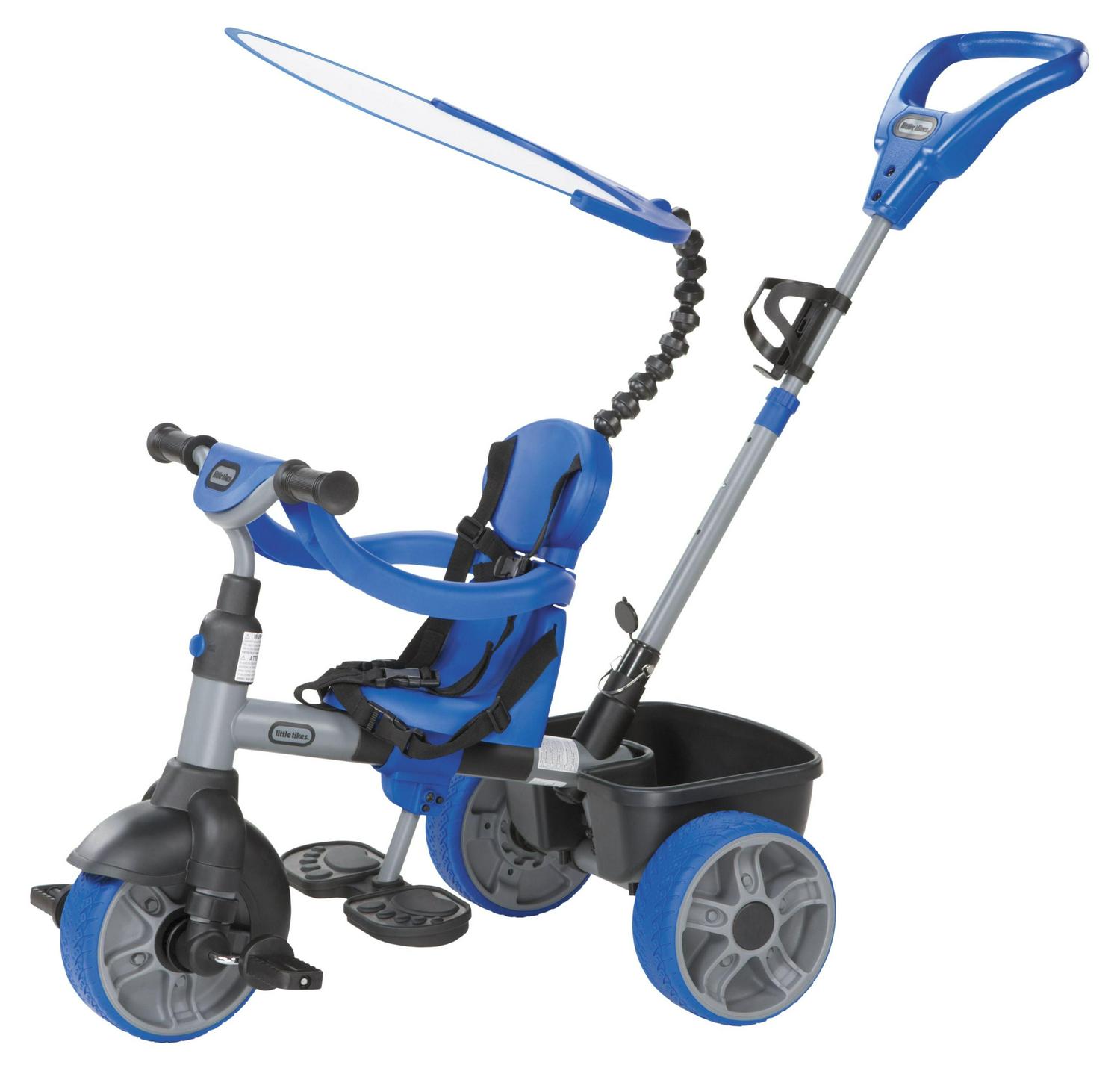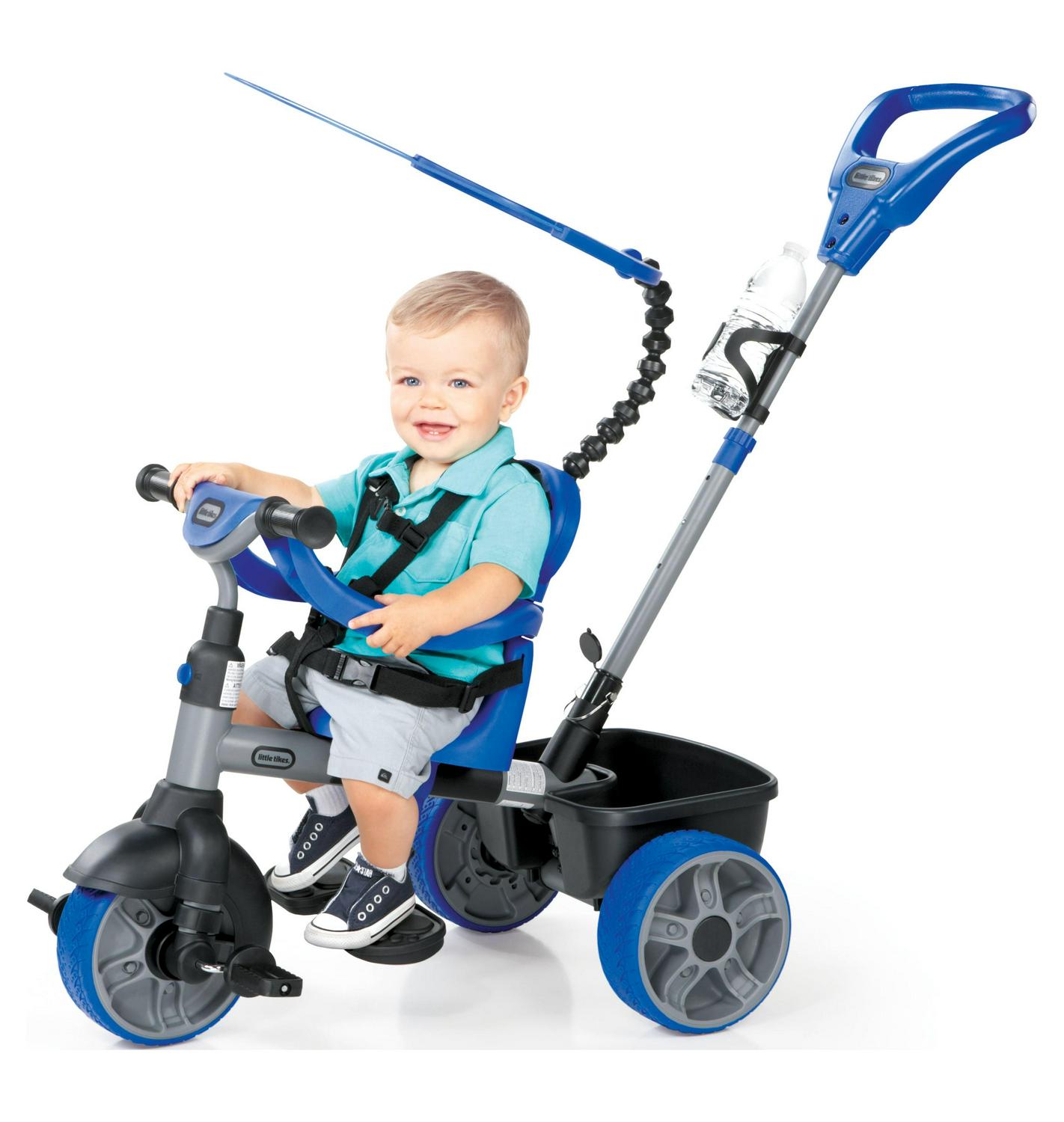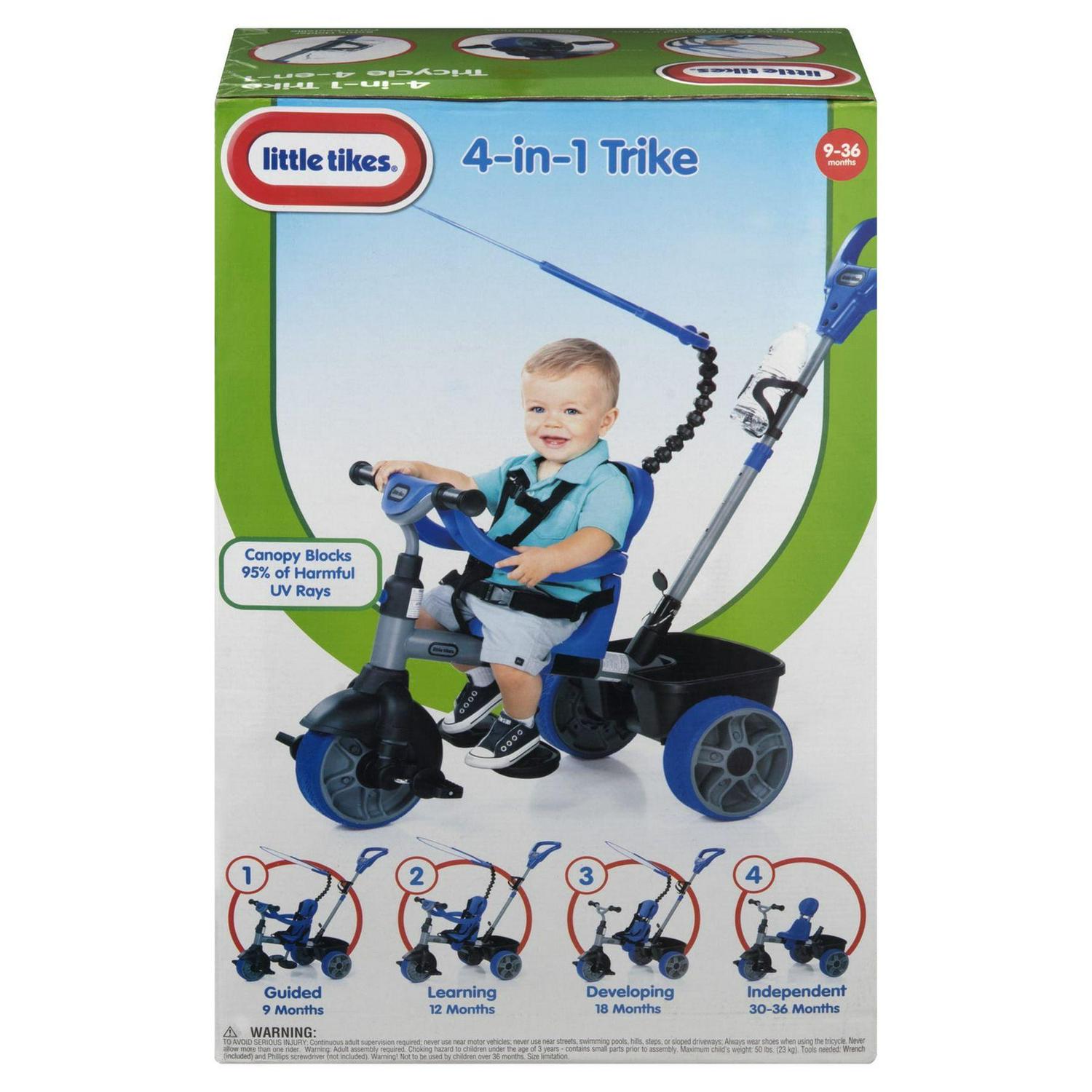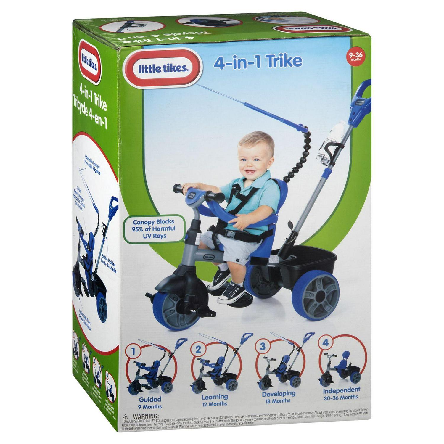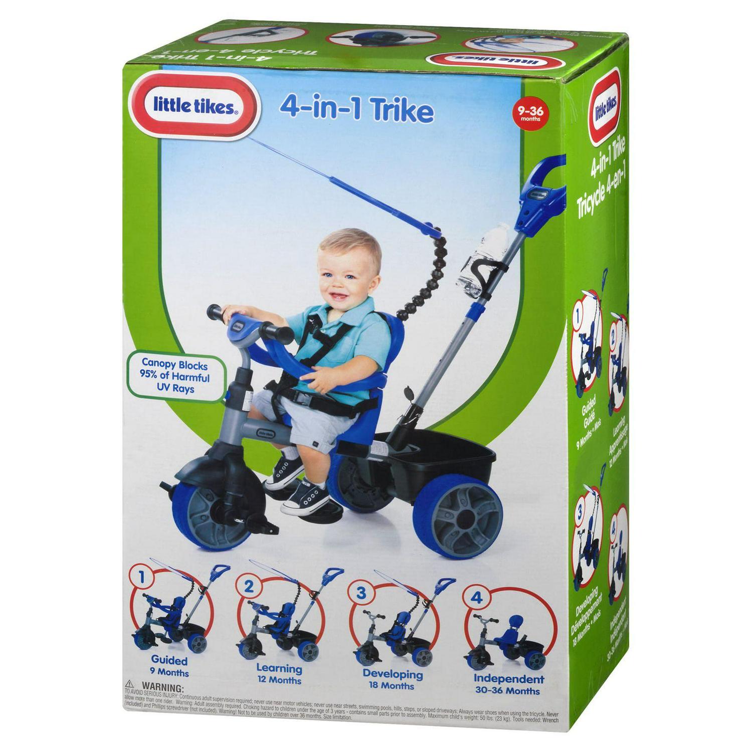 Little Tikes 4-in-1 Basic Edition Trike in Blue, Convertible Tricycle for Toddlers Tricycle with 4 Stages of Growth and Shade Canopy- For Kids Kids Boys Girls Ages 9 Months to 3 Years Old