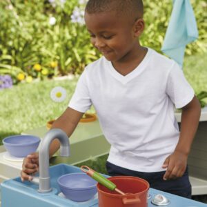 The Little Tikes Backyard Bungalow Role Play Playhouse is big enough for all imaginations. This outdoor playhouse has enough room for multiple kids to play in at the same time and includes a working door and mailbox with a slot that actually opens and closes. Three role play stations include: a kitchenette with pretend stove and sink, a lemonade stand with a real chalkboard and a gardening station with make-believe flowers. Over 25 accessories and a canopy that opens and closes means kids 2+ will be able to play for hours. Kids will dream large with the Little Tikes Backyard Bungalow Role Play Playhouse!