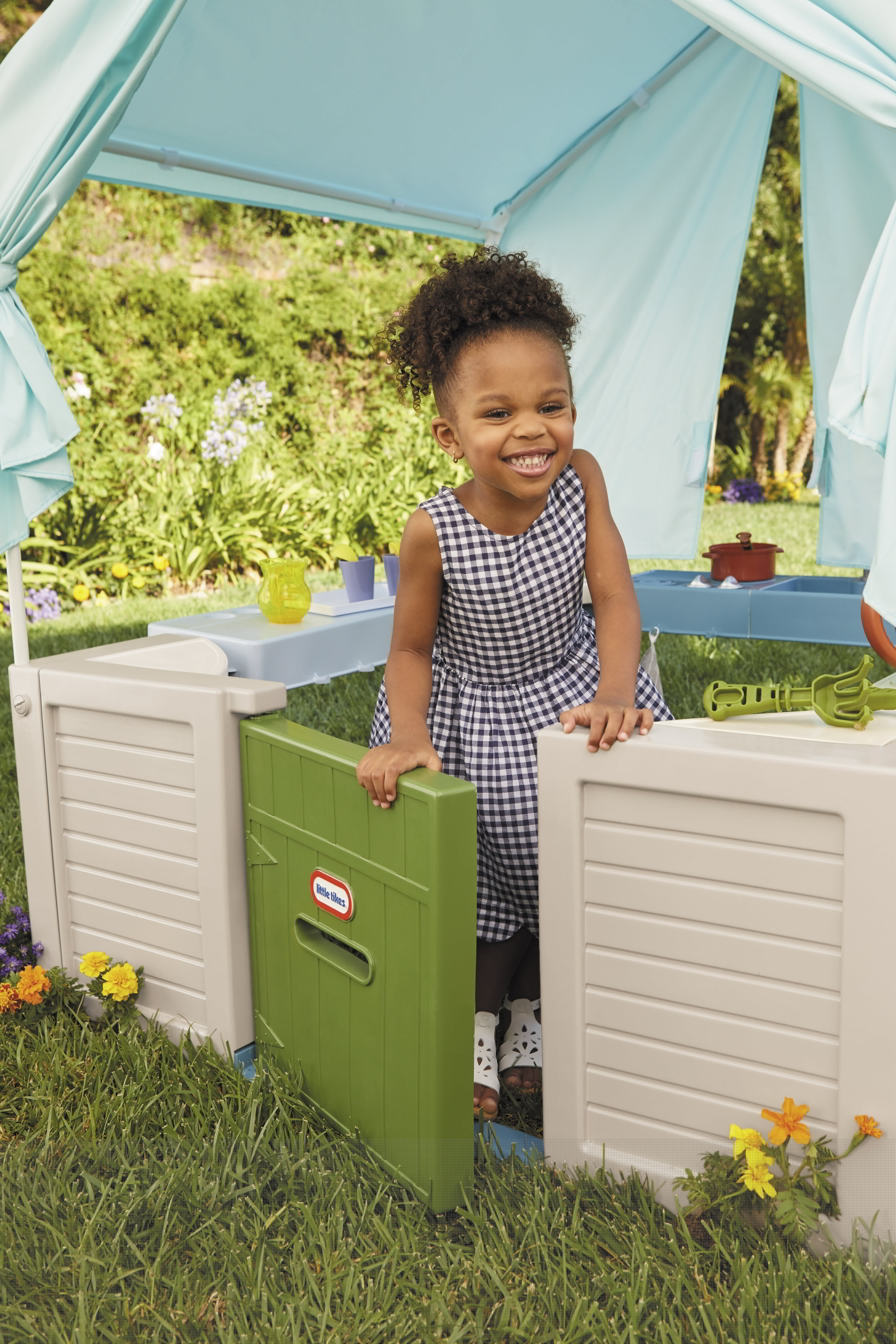 Little Tikes Backyard Bungalow Role-Play Playhouse with Kitchen, Garden, and Canopy
