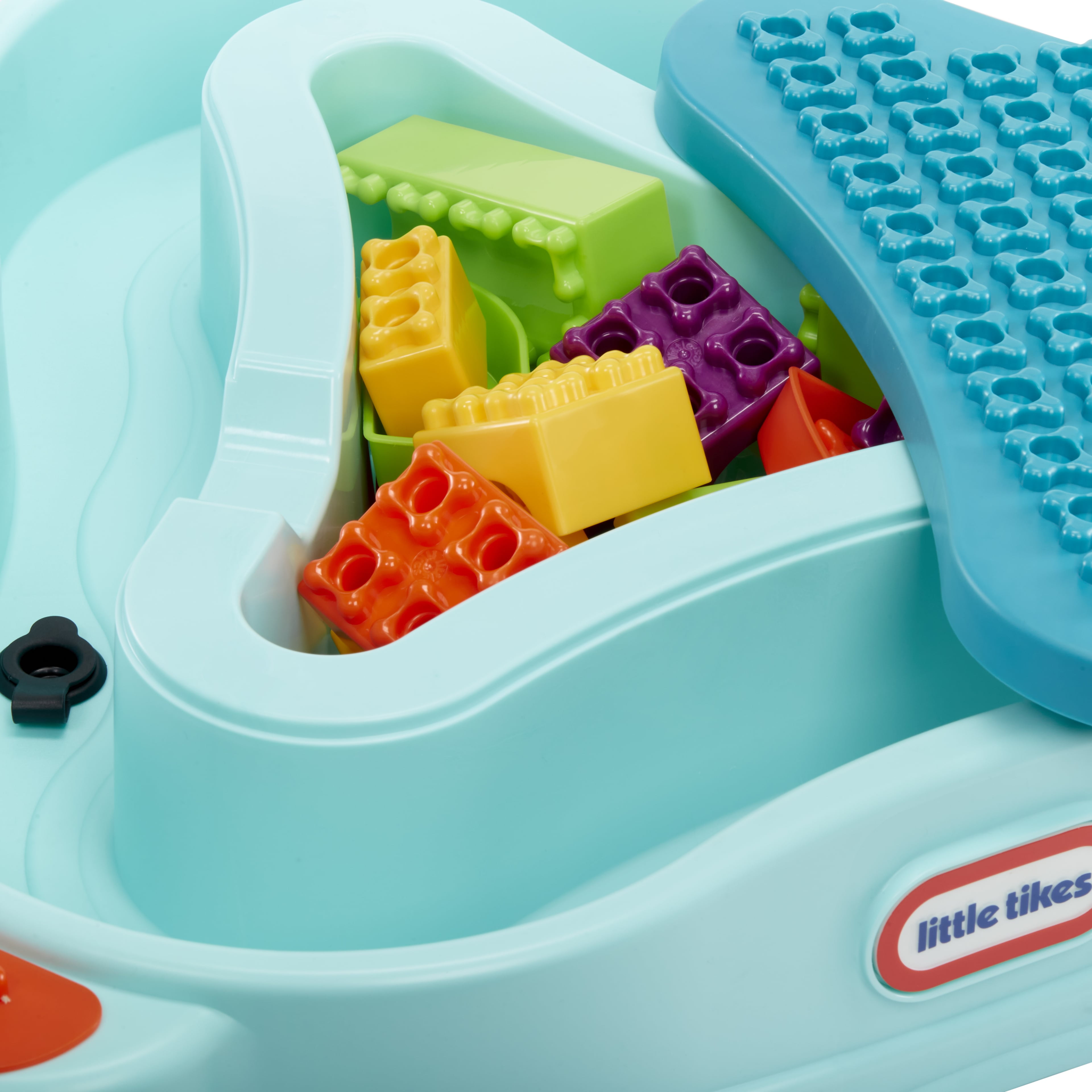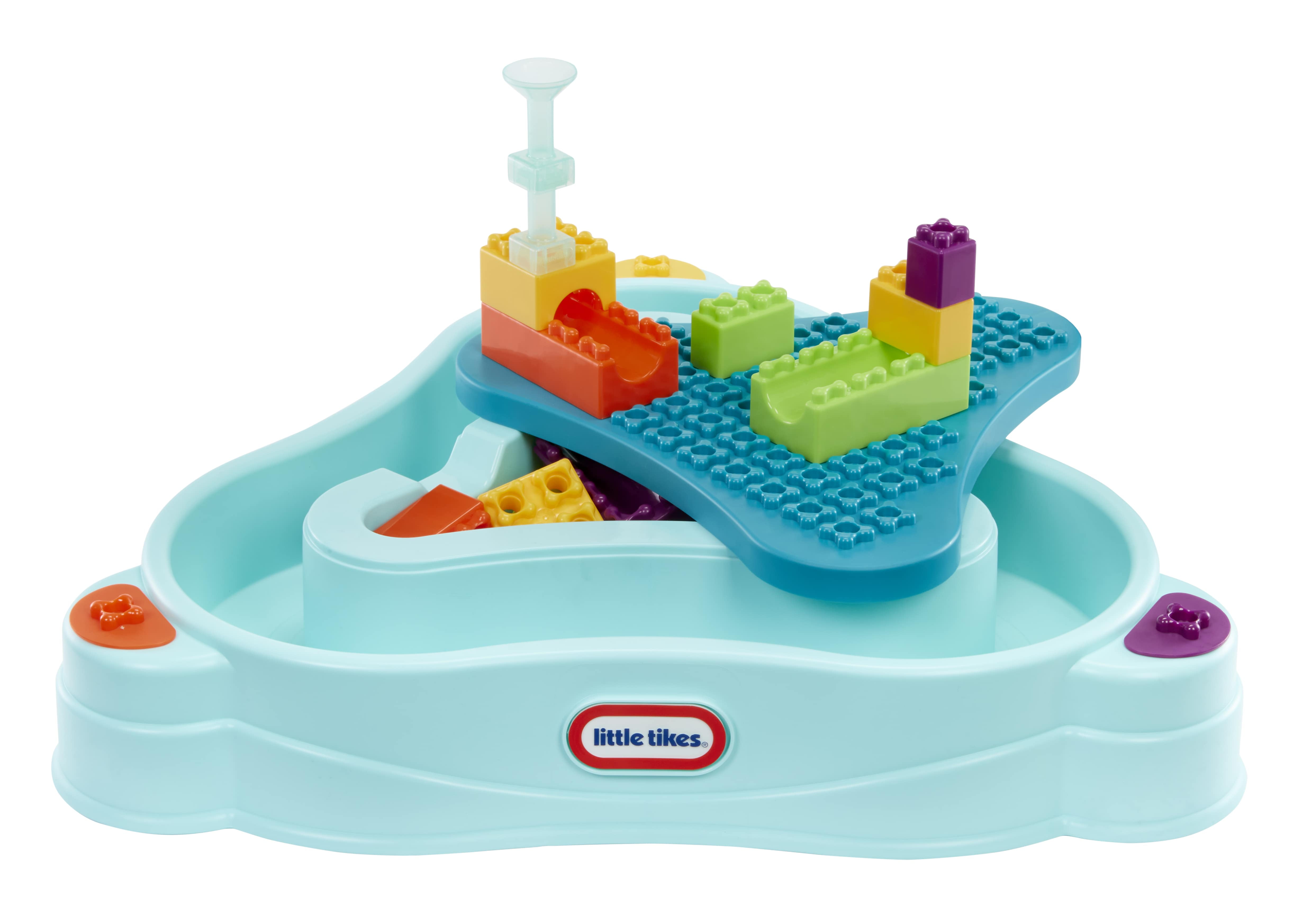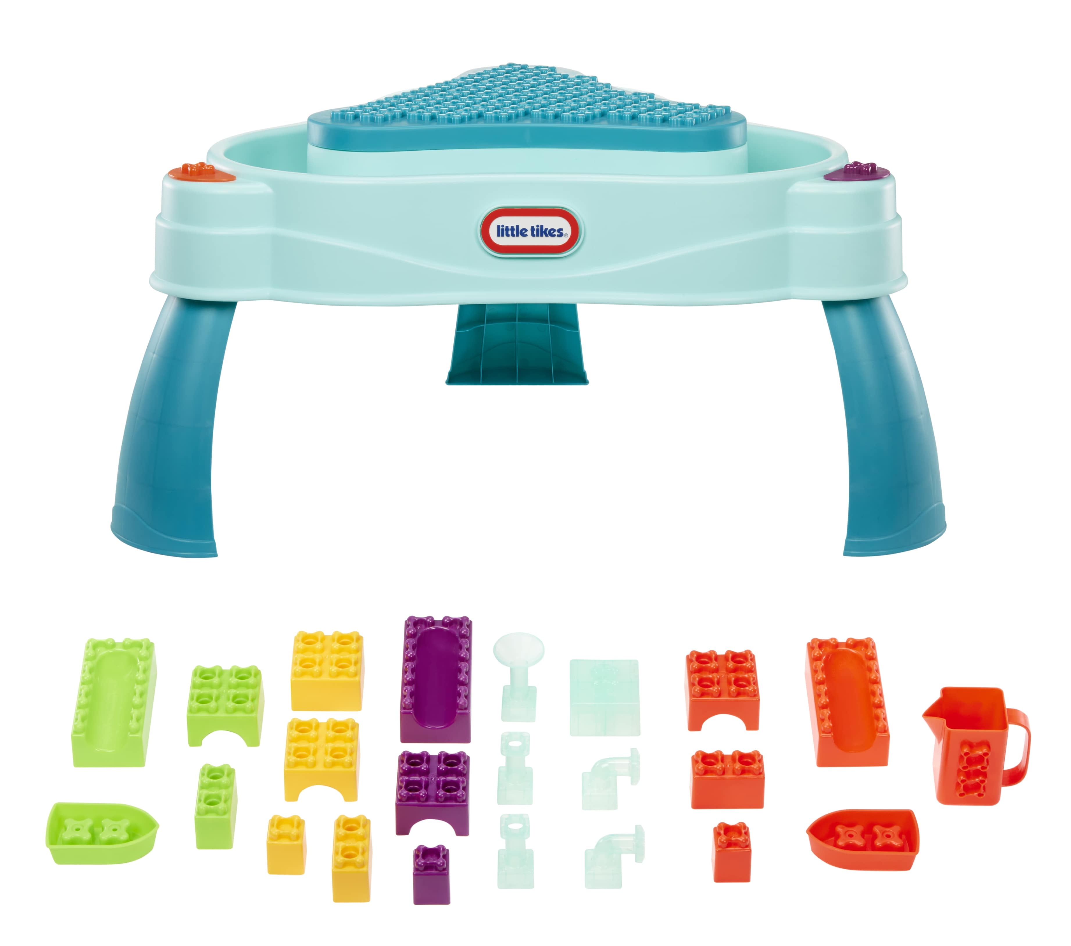 Little builders can play year-round with the Little Tikes Build & Splash Water Table, a construction play table and water table, all-in-one! With over 25 pieces and room for all to play, toddlers and kids can enjoy colorful blocks, funnels, pipes, elbow pipes, boats and a pitcher. This wet/dry play set is perfect for both indoor and outdoor excitement, all year long. This dynamic playset includes removable legs for optional fun on the floor, a must-have set for grow-with-me-play. Enjoy easy cleanup and storage with the removable center building surface and additional mesh storage bag. Encourage the development of motor skills while using imagination to build and play. Assembly required. Ages 1-6.