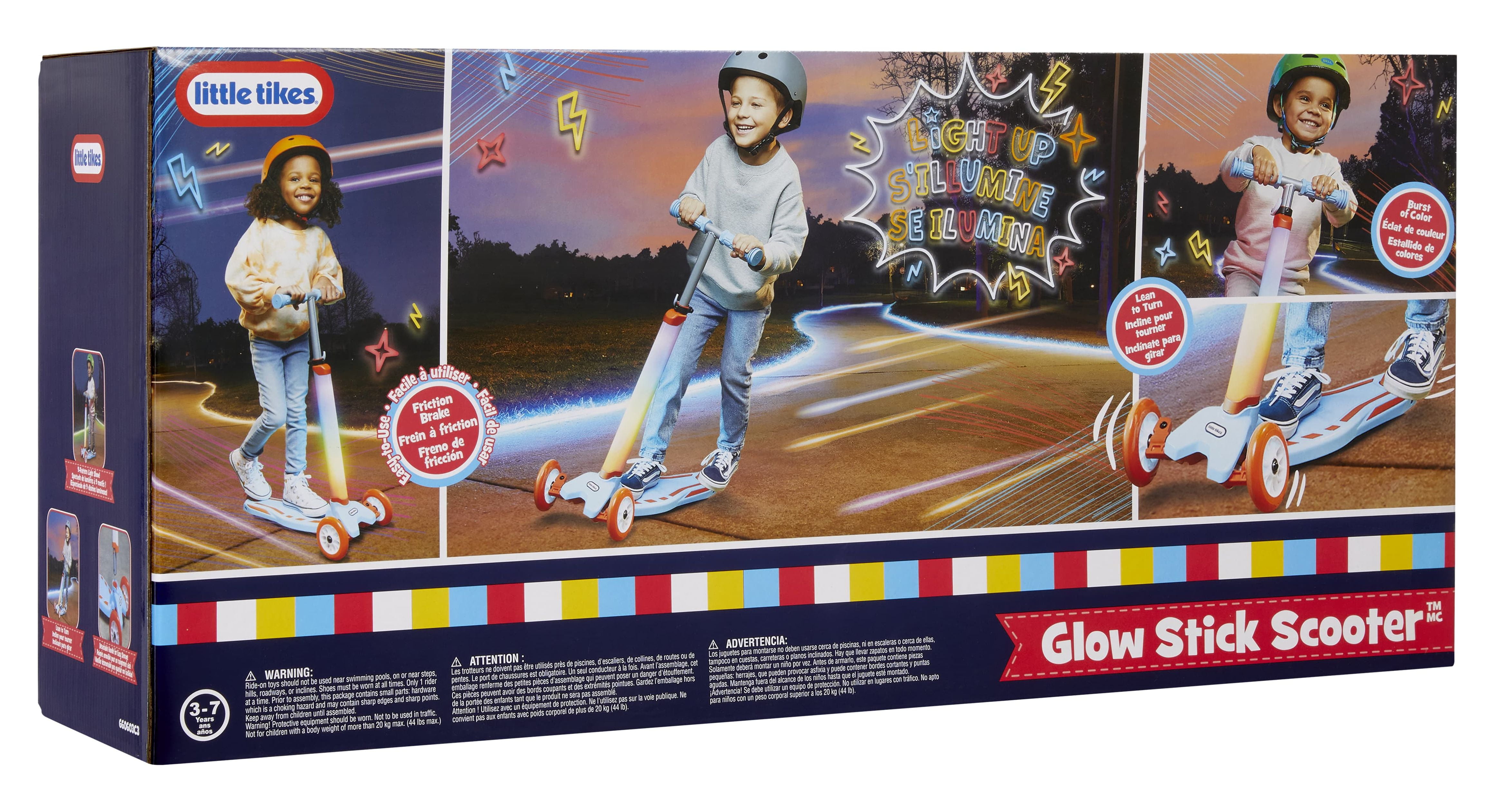 Little Tikes Glow Stick 3 Wheel Kick Scooter with Light Patterns, Ages 3-7 Years
