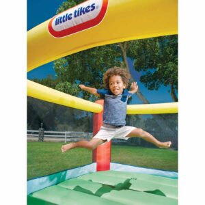 The Little Tikes Jump N Slide Bouncer is extra-fun and has a compact design allowing it to fit in almost any backyard. It features a 7′ x 7′ enclosed bounce area and an extra-wide slide that lets two kids race. This kids’ bouncer is easy to transport and set up almost anywhere and includes a storage bag, heavy-duty blower with GFCI plug, repair kit and stakes for anchoring. It is surrounded by high walls and mesh netting for added safety and the heavy duty blower provides continuous airflow. Your little ones will love jumping around in this Little Tikes Jump N Slide Bouncer. It is built of puncture resistant material and is made with high quality and is sturdy and durable for long-lasting use.