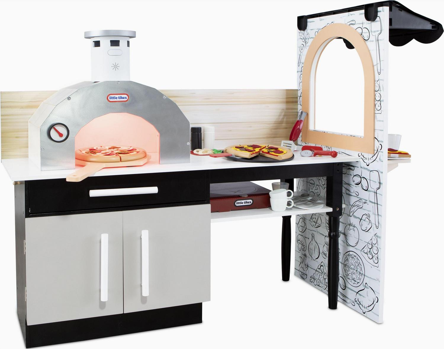 Role play becomes gourmet with this real looking, sturdy and durable wood pizza restaurant, where kids can dream up and bake their favorite pizzas and then serve them to friends and family. Inspired by those rustic pizza restaurants with the unique and special wood burning ovens, this dual-sided play allows kids to play pizza chef, server or customer. Kids will be encouraged to cook up their imagination and creativity thanks to the 20+ accessories, including pizzas and tons of stick-on felt toppings, as well as all the utensils and serving items they’ll need. And the realistic lights and sounds add to the excitement. The cabinet has working doors and drawer for tons of storage and easy cleanup. This set is molto bene.It’s time to cook up some fun in the kitchen! The Little Tikes wooden play kitchen with accessories offers a great place to spend time playing with your toddler and preschooler, whether pretend baking their favorite tasty dish or cleaning up dishes after a wonderful meal! The perfect toy gift for ages 3-5 year old girls and boys. The wooden play kitchen play sets come with all of the accessories needed to keep girls and boys busy all day with imaginative pretend play! With its realistic lights sounds and interactive features, these popular wooden play kitchen play set looks just like a real kitchen in your house! From MGA Entertainment, creator of the beloved Fashion, Collectible, Girls and Baby Doll lines LOL Surprise, Rainbow High, Na Na Na Surprise, Bratz, MGA’s Dream Ella, MGA’s Glitter Babyz, Lalaloopsy, Poopsie Surprise, and Baby born Surprise, as well as Little Tikes and many other favorites.