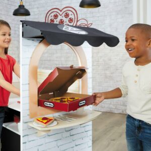 Little Tikes Real Wood Pizza Restaurant 20-Piece Wooden Pretend Play Kitchen Toys Playset, Realistic Lights and Sounds, Dual Sided Play, White and Gray- for Chidren 3+