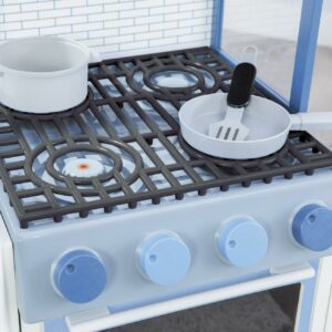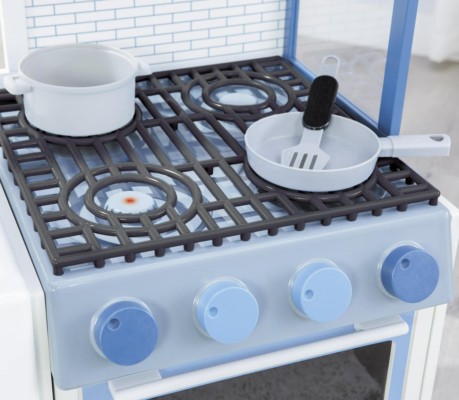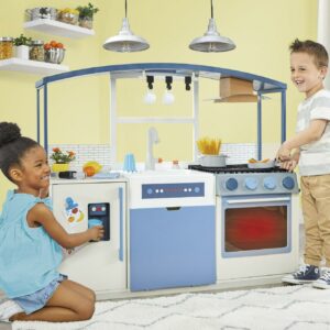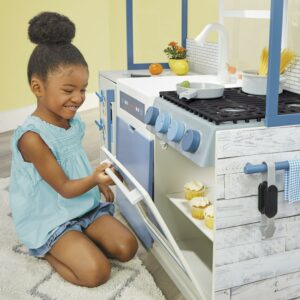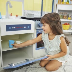 Little Tikes Wood Chef’s Kitchen 21- Piece Wooden Pretend Play Kitchen Toys Playset, Realistic Lights and Sounds, Blue and White- For Kids Girls Boys Ages 3 4 5+