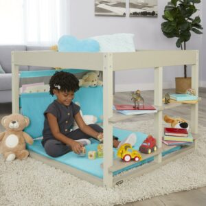 The Little Tikes Read & Dream Nap Nook is a unique reading nook for your child to have a quiet space of their own. The cushioned reading nook pad provides comfort for even the longest reading sessions and has an easy to clean surface. The upper hanging net is a bonus space for relaxing and changing up the view, plus its easy to access via the climbing ladder. The stylish fabric walls come with built in storage for books, magazines, and more.