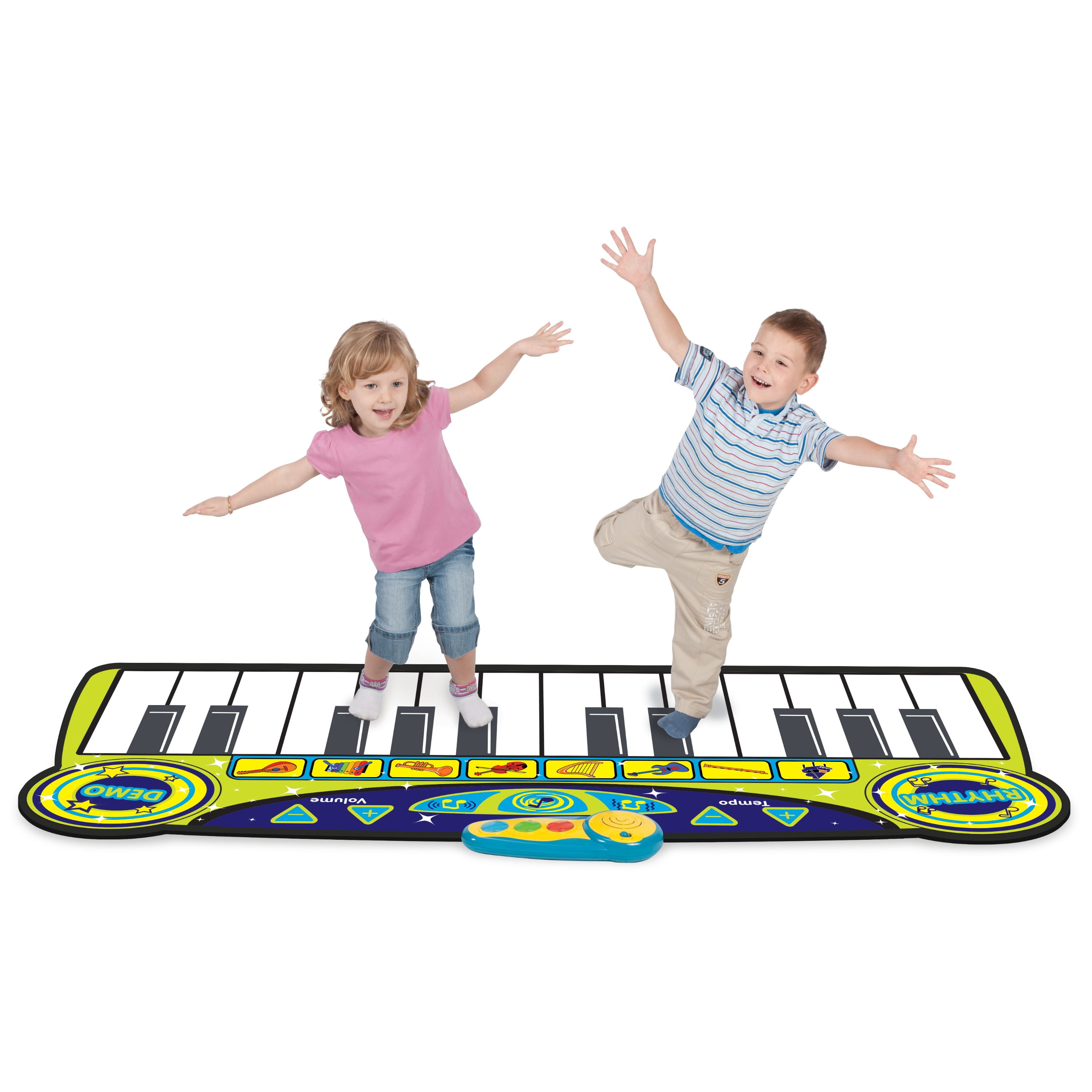Encourage the young musician in your life with the Little Virtuoso Romping Stomping Piano Mat. This fun piano floor mat features 24 giant piano keys. This musical mat for kids offers eight different instrument sounds: piano, flute, xylophone, harp, violin, trumpet, guitar and banjo. This Little Virtuoso Romping Stomping Piano Mat also has rhythm selections for fun dance beats. Special effects add to the fun with this piano floor mat. This musical mat for kids includes tempo and volume controls. The Little Virtuoso Romping Stomping Piano Mat has record, stop and playback features, so your little ones can showcase their own unique musical arrangements. This piano floor mat encourages active play as children move back and forth to stomp on the targeted keys. This musical mat for kids also helps develop aural skills. Recommended for ages 3 years and up. WARNING: CHOKING HAZARD — Small parts. Not for children under 3 yrs.