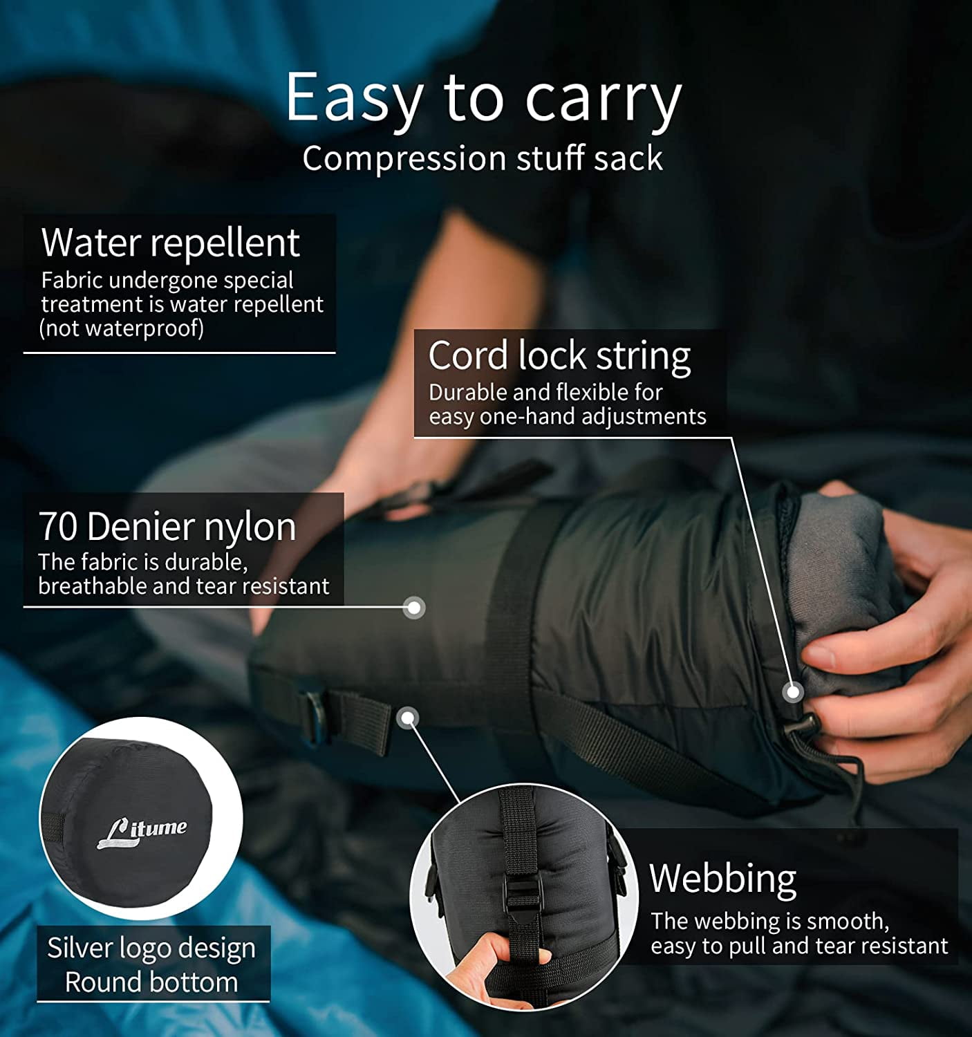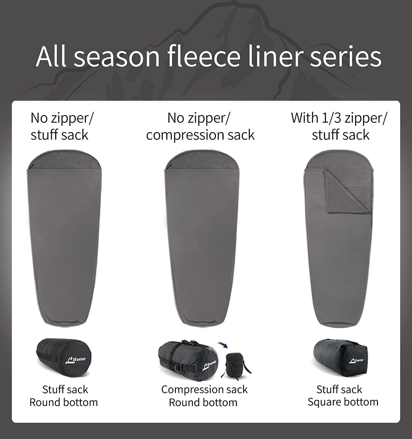 Litume All Season Sleeping Bag Liner Adds Up to 27F, Lightweight Mummy Sleeping Sack for Backpacking, Camping, Traveling with Drawstring Hood and Stuff Sack