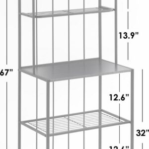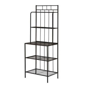The sleek and stylish Liv Bakers Rack is a contemporary take on the classic bakers rack design. This beauty is updated by simple lines and a versatile black finish. Use the top two shelves for glassware or decorative touches. The central shelf is perfect for serving beverages or appetizers. Two wire shelves below offer even more space for display or storage.