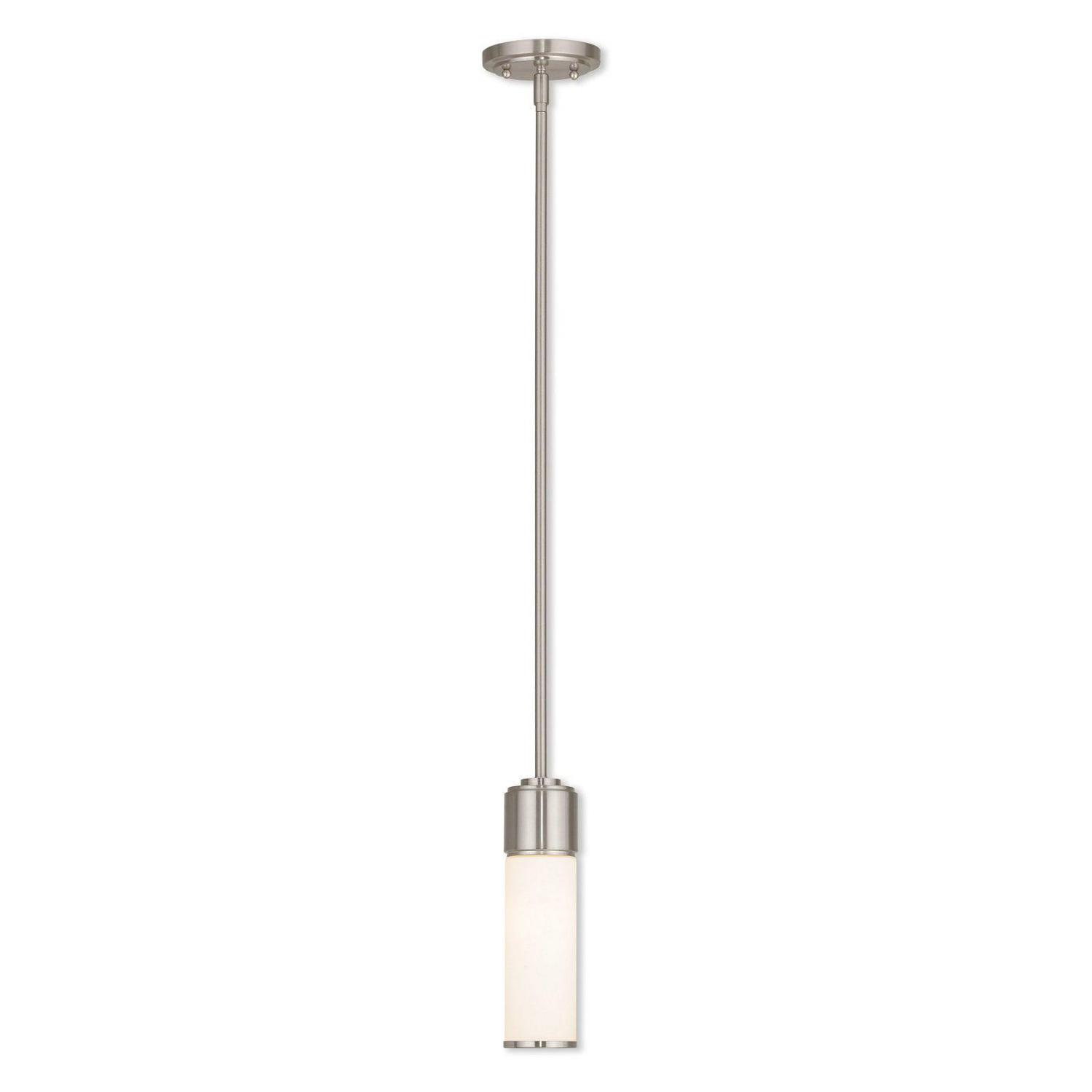 Collection: Weston, Material: Steel, Finish Color: Brushed Nickel, Width: 4.75″, Height: 11.75″, Hanging Method: Stem, Lamping Type: Incandescent, Number Of Bulbs: 1, Wattage: 60 Watts, Moisture Rating: Dry Rated, Desc: This stunning design features a polished nickel finish studded with hand blown satin opal white glass. This sleek design will brighten up counters, dining areas, and more. No. of Rods: 3 / Canopy Included: Yes / Shade Included: Yes / Canopy Diameter: 4.75 / Rod Length(s): 18.00. ,-Weston – 1 Light Mini Pendant in Contemporary Style – 4.75 Inches wide by 11.75 Inches high-Brushed Nickel Finish-OPAQUE-GLASS, LIGHTING, LIGHTING-FIXTURE, SILVER, No Bulb Exposure, LINEAR-FIXTURE-SHAPE, PENDANT-FIXTURE, CLASSIC-HANGING, METAL-LOOK, ceiling mounted-52111-91
