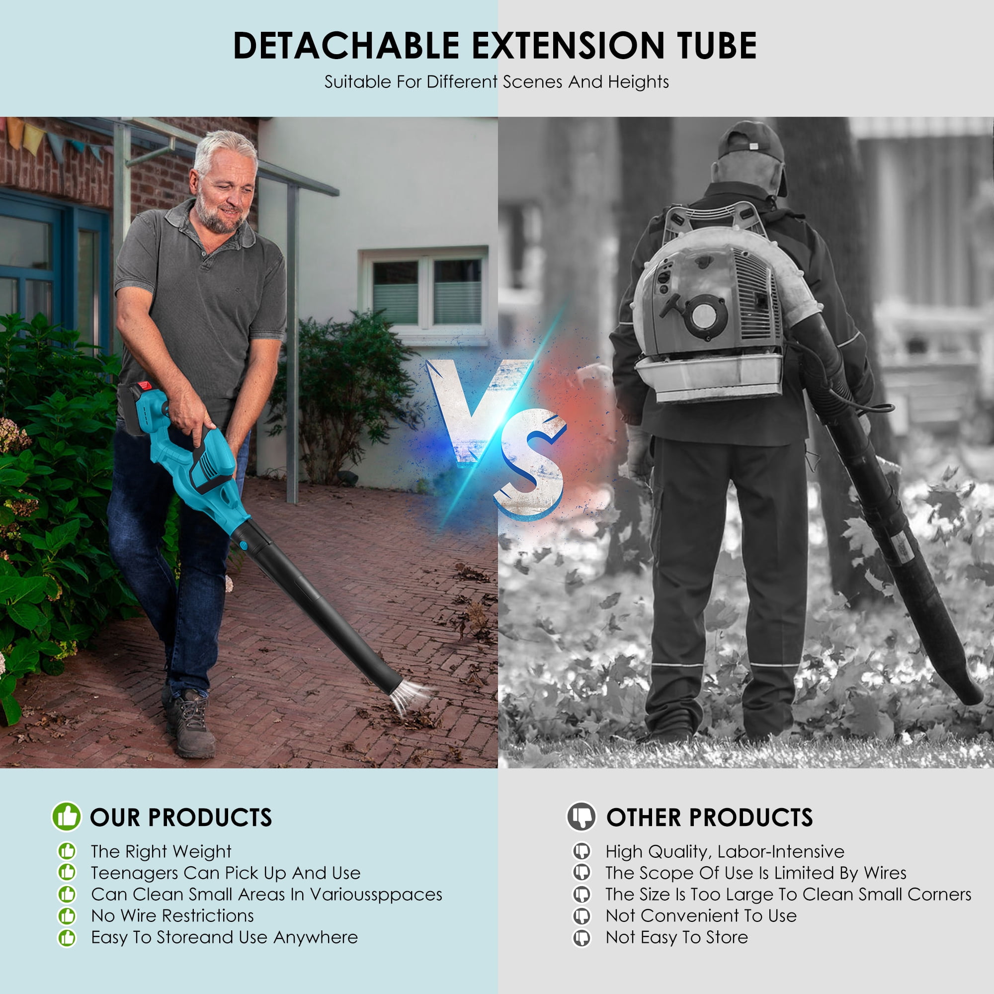 1、Uses a fan to generate a flow of air, blowing leaves away. 2、Compact and lightweight, easy to carry. 3、Cordless design expands the working range