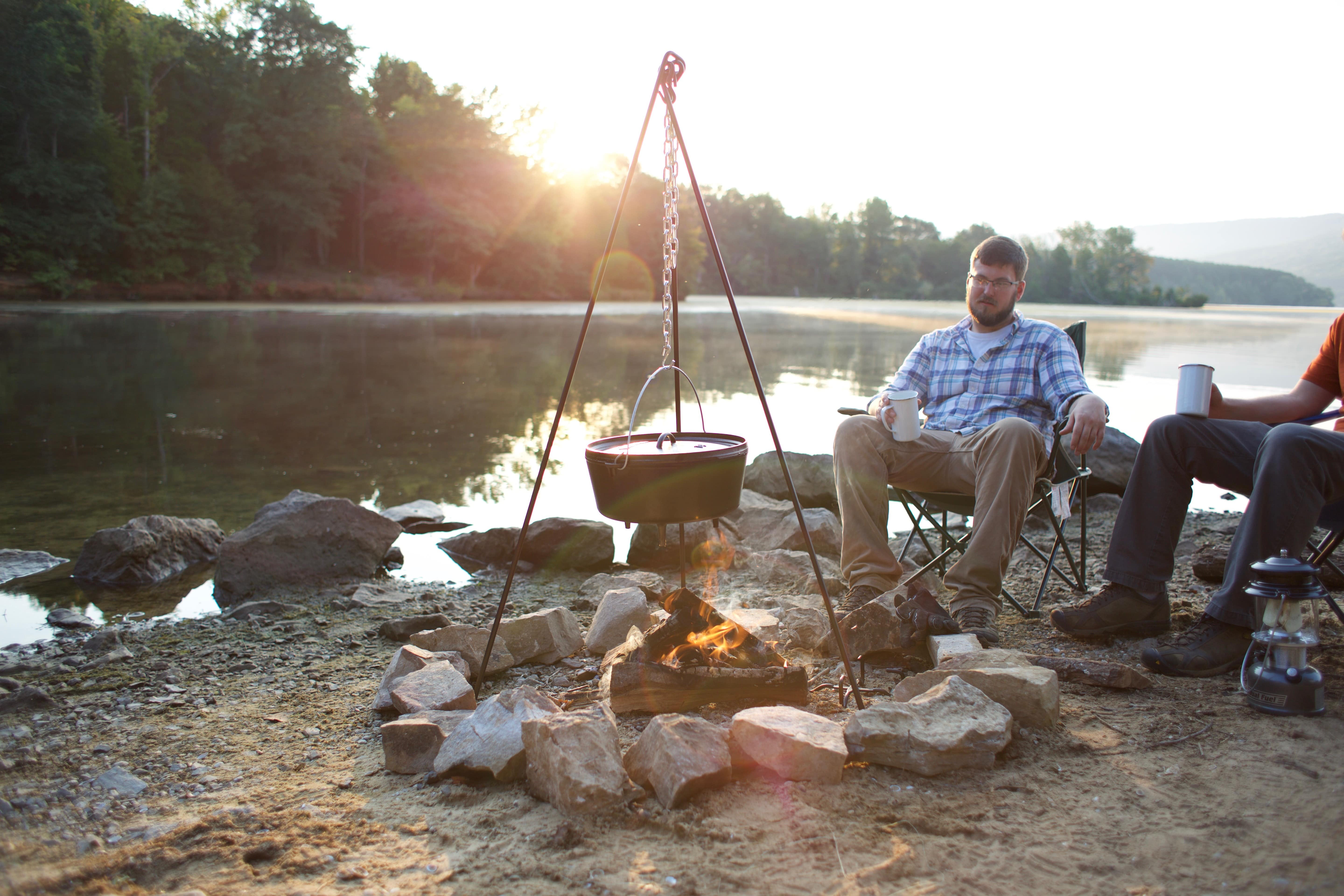 The Lodge 12 Inch / 6 Quart Seasoned Cast Iron Camp Dutch Oven With Bail Handle is a meal-time legend that will be your go-to campfire cooking tool. Made with just iron and oil, the cast iron camp dutch oven features a durable design, sturdy feet for cooking over coals, and a steel bail handle, making it the perfect campfire partner. The dutch oven’s naturally nonstick surface provides excellent heat retention and distribution for consistent cooking at any temperature. Use it to slow-cook your campfire favorites under the stars—this dutch oven loves to go on adventures. Lodge cast iron is built to last for generations, so you can serve memories at every meal, year after year. The Lodge cast iron camp dutch oven is seasoned, ready to use, and easy to care for. Since 1896, Lodge Cast Iron has been making heirloom-quality skillets, pans, dutch ovens, bakeware, and grilling gear, bringing professional chefs, home-cooks, and outdoors folk everything they need to make incredible meals. Our cast iron is made in Tennessee, and we’re proud to be a family-owned company with a strong commitment to quality, values, and integrity. As the original cast iron manufacturer, we proudly set the standard in cookware that can go anywhere and do anything.