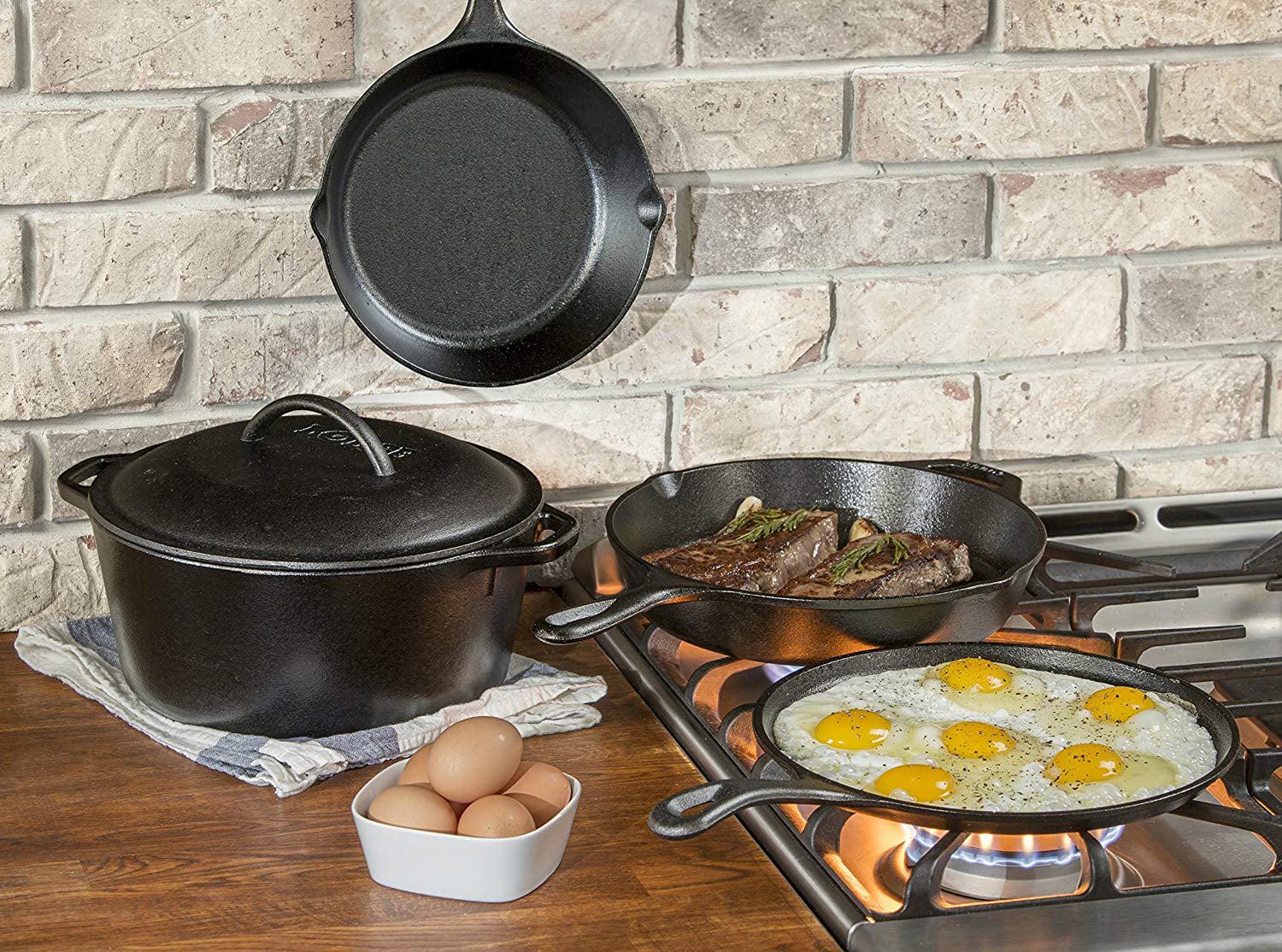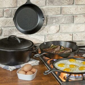 Set Includes:10.5-inch round griddle8-inch skillet10.25-inch skillet5-Qt. Dutch oven10.25-inch iron cover